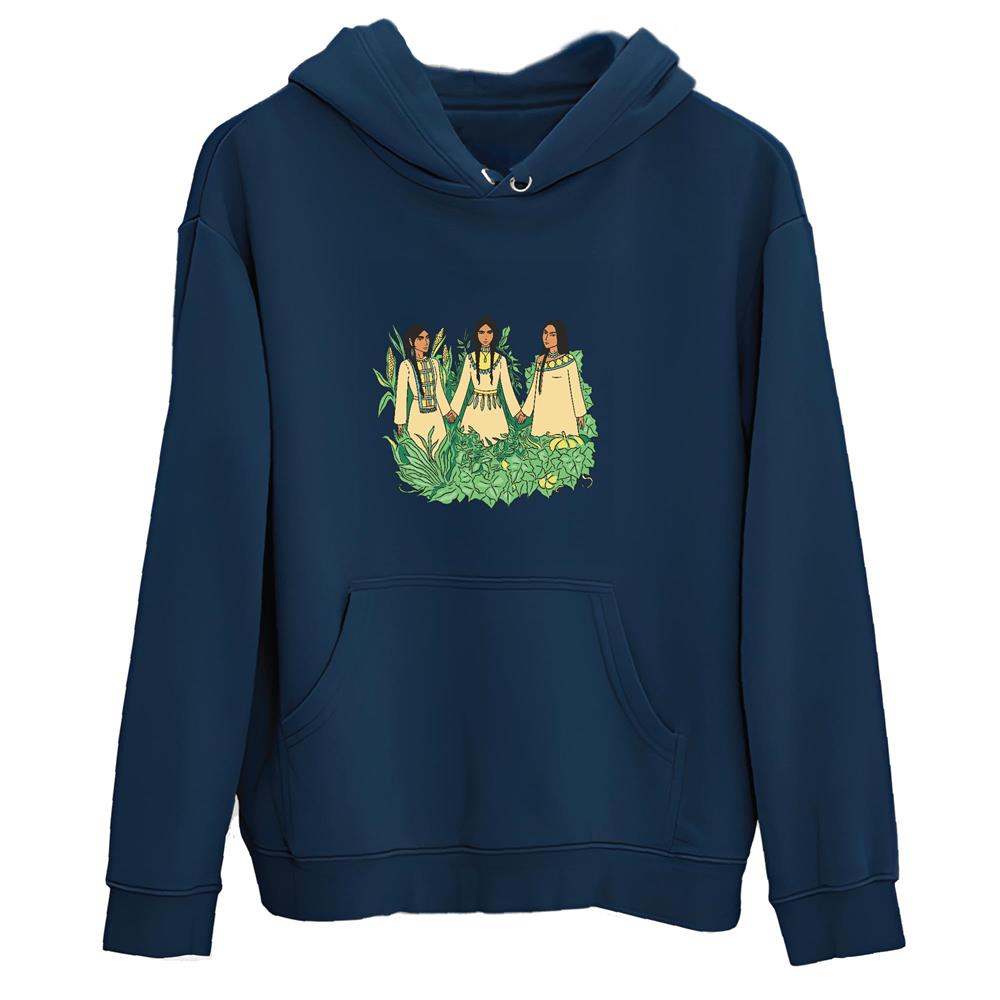Native American Sisters Gift Corn and Squash Plants Design for Women and Girls Navy and Muticolor Unisex Hoodie