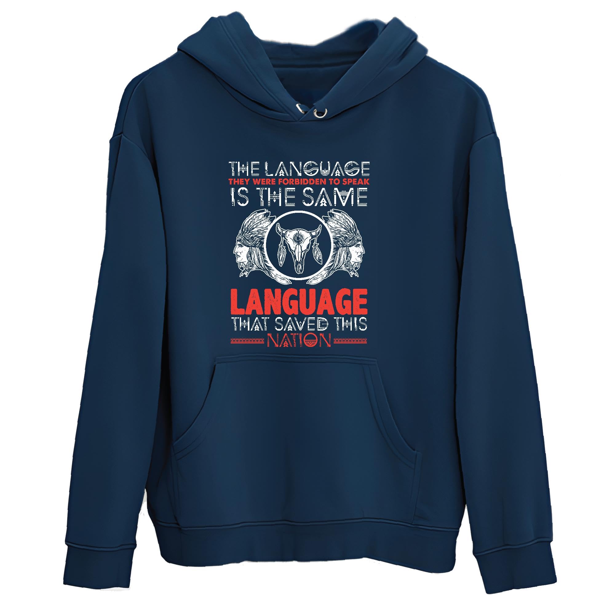 Native American Skull Gift Idea for Nation Language Lovers Navy and Muticolor Unisex Hoodie