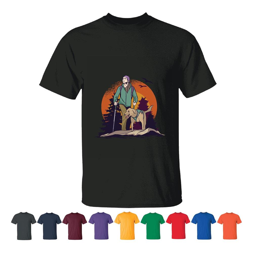 Nature Gift for Women Hiking in the Forest with Dog and Beautiful Trees and Birds Men Women Black T shirt