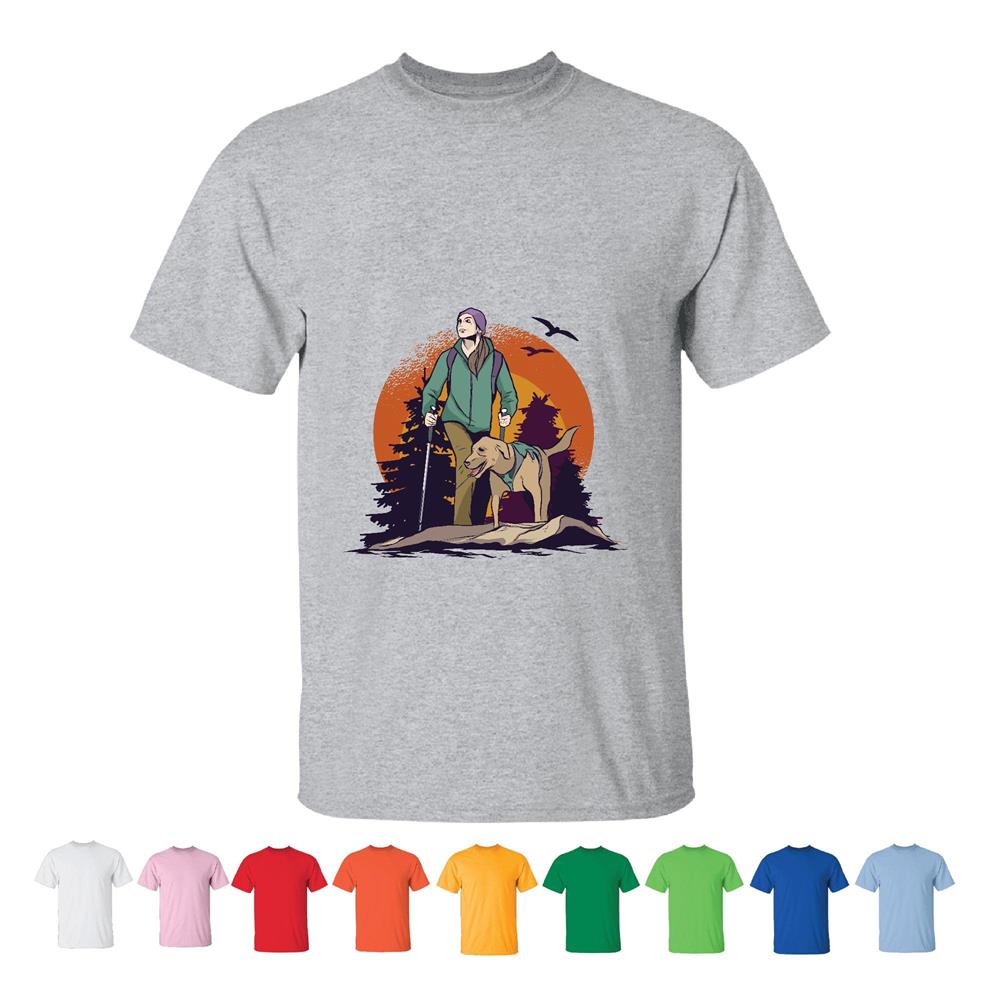 Nature Gift for Women Hiking in the Forest with Dog and Beautiful Trees and Birds Men Women White Gray T shirt