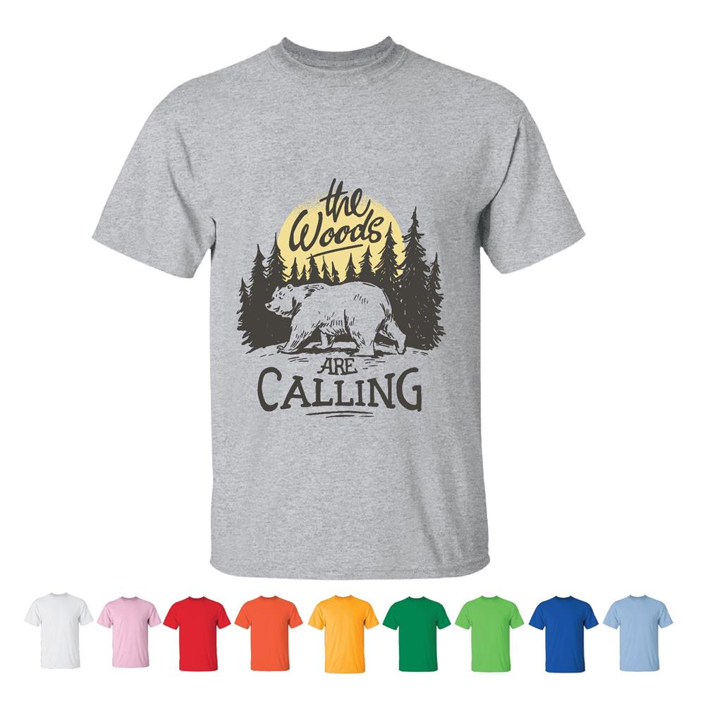Nature Inspired Bear Gift for Forest Lovers The Woods are Calling Men Women White Gray T shirt