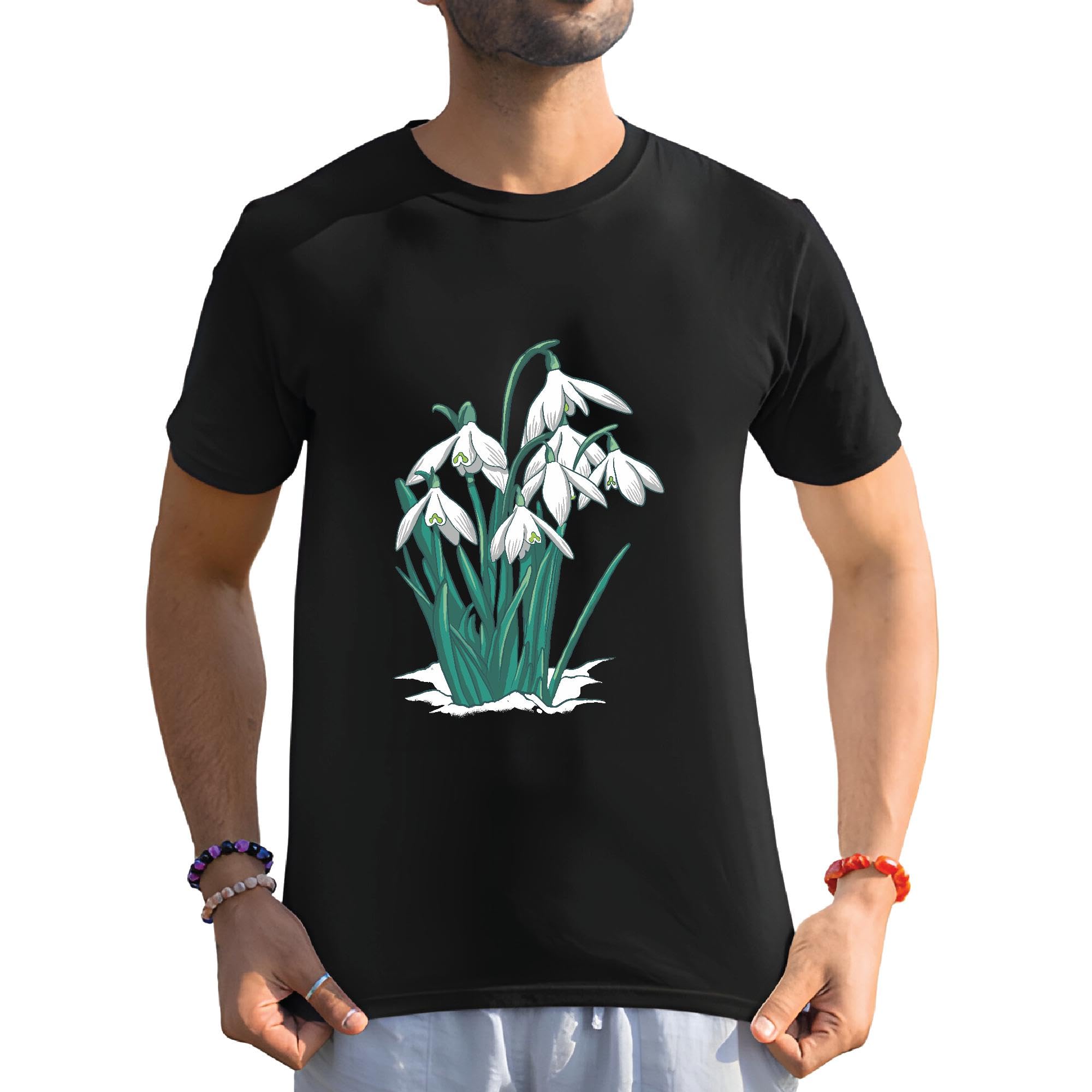 Nature Inspired Flower Illustration Snow Gift for Nature Lovers Men Women Black Multicolor T shirt