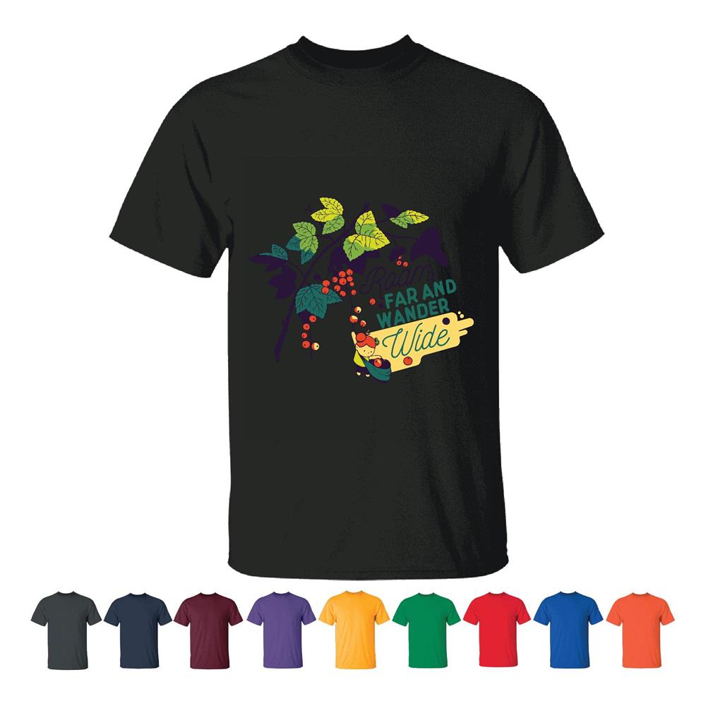 Nature Outdoors Quote Gift Tiny Girl Collecting Berries and Roaming Far and Wide for Kids Men Women Black T shirt