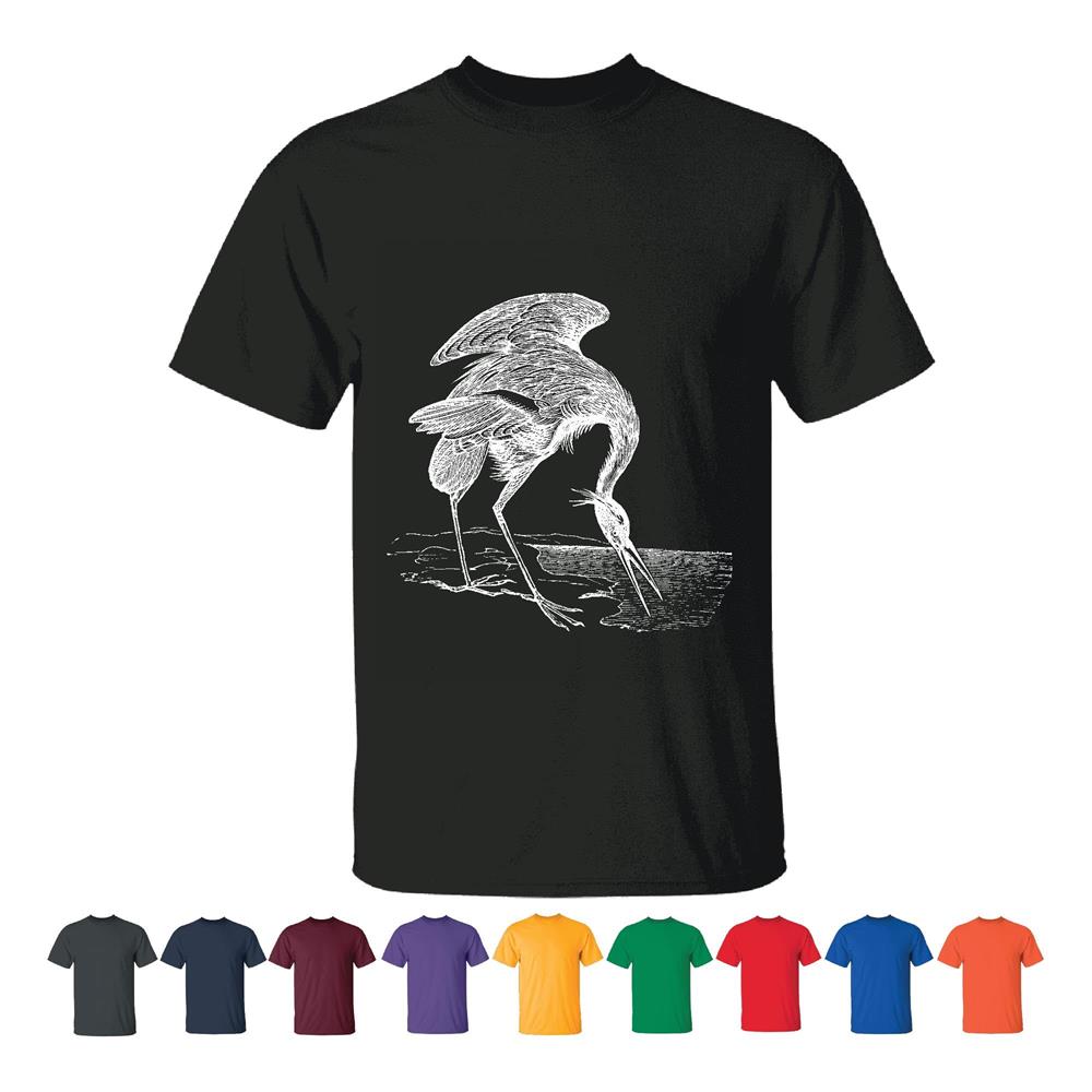 Nature Themed Gift for Nature Lovers Blue Heron on Water Surface Men Women Black T shirt