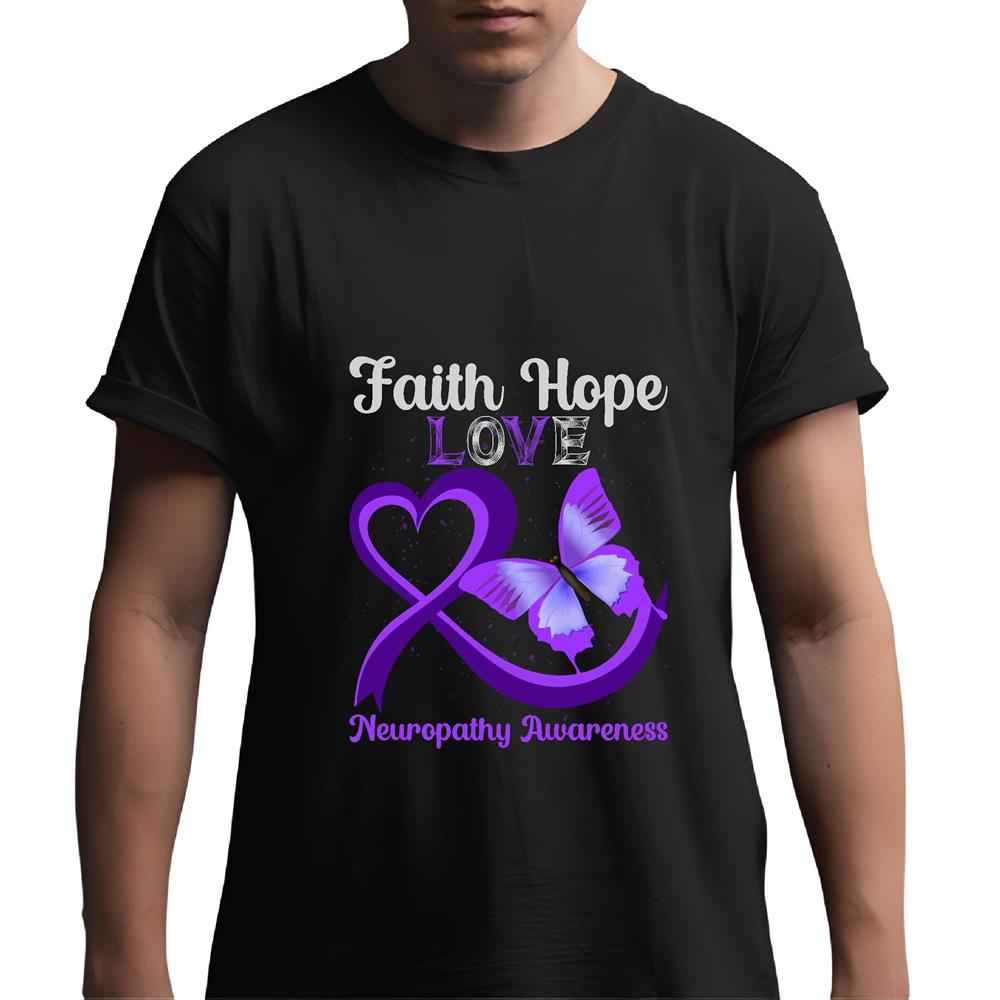 Neuropathy Awareness Gift for Faith Hope Love Fans with Butterfly Heart Design Men Women Black Multicolor T shirt