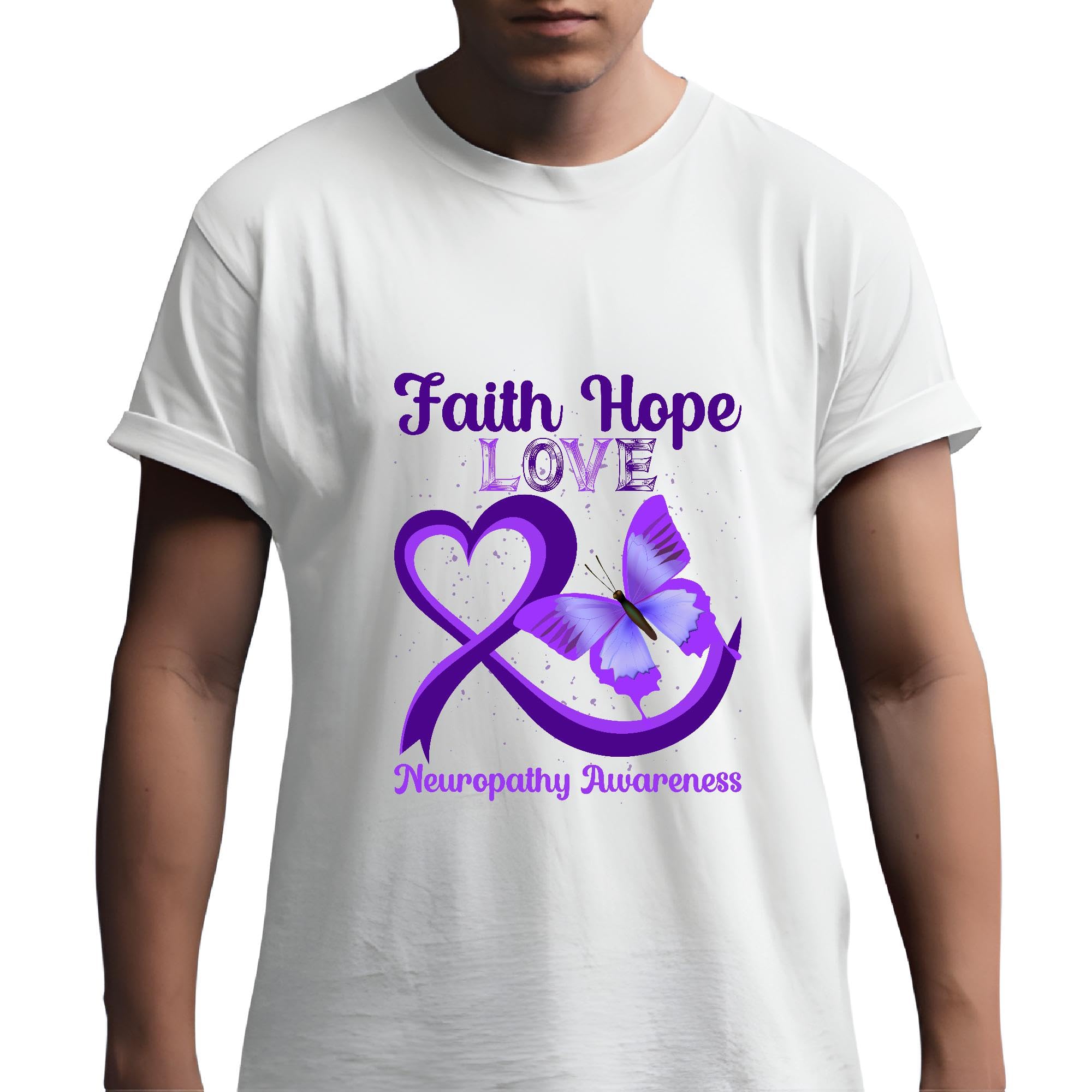 Neuropathy Awareness Gift for Faith Hope Love Fans with Butterfly Heart Design Men Women White Gray Multicolor T shirt