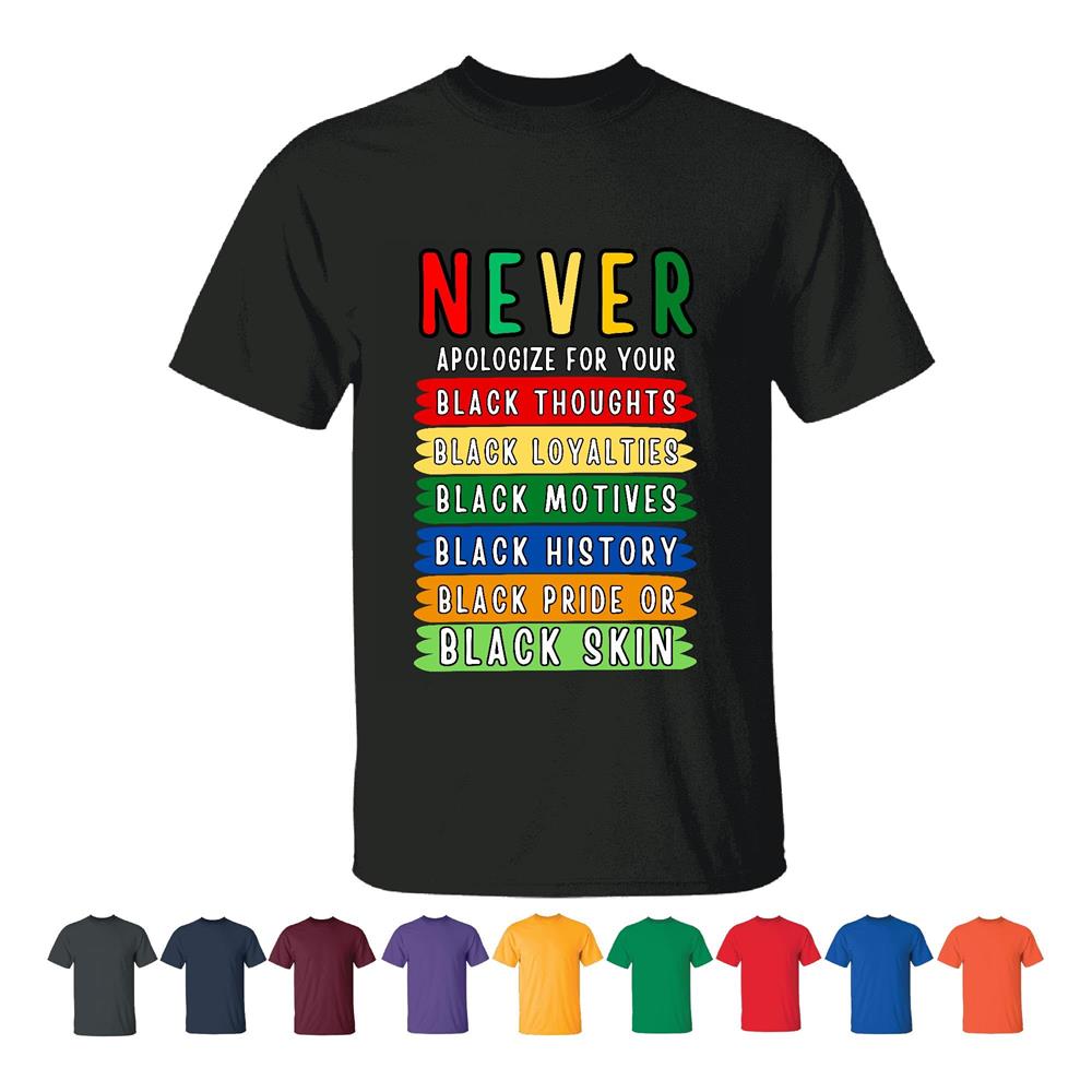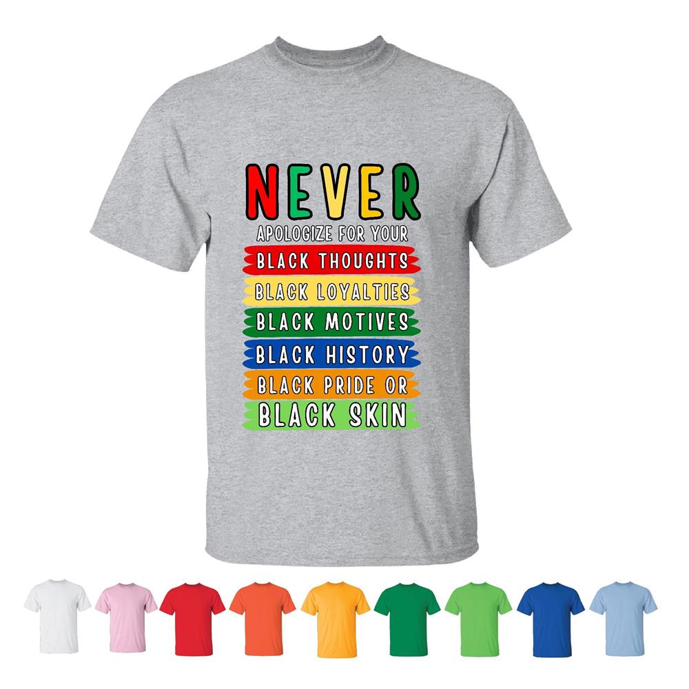 Never Apologize Black African American History Month Ts for Men Women Men Women Black T shirt