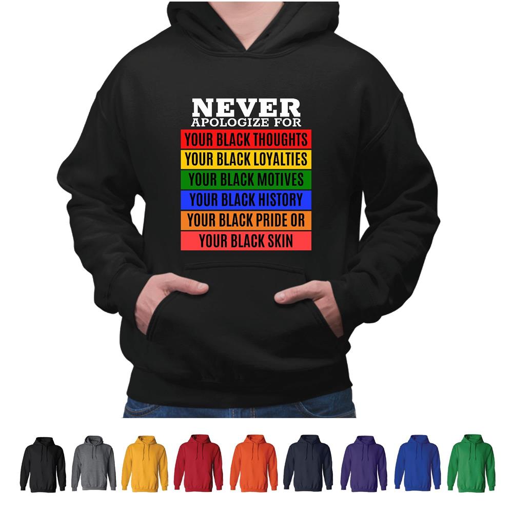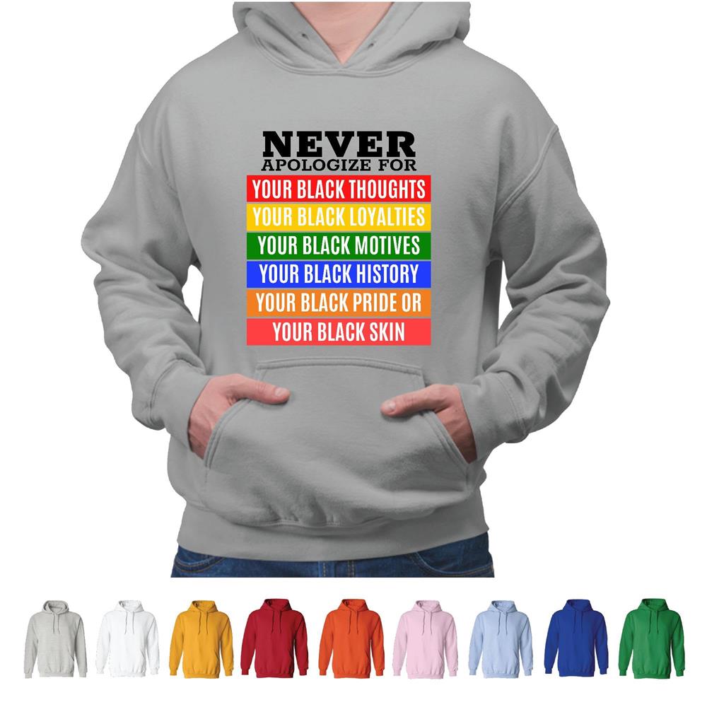 Never apologize for your Black thoughts loyalties history for History Month pride Black and Muticolor Unisex Hoodie