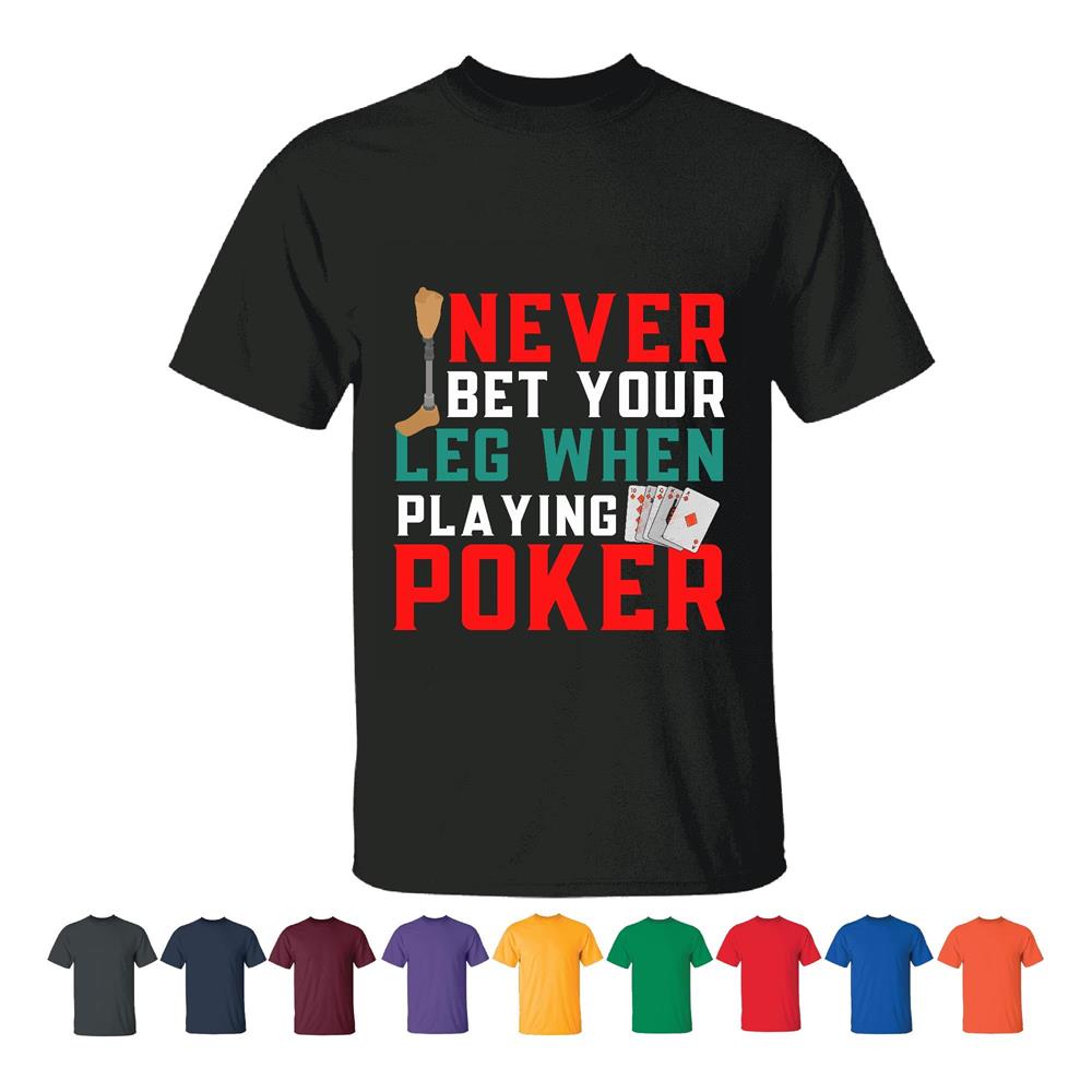 Never bet your leg when playing Poker humor saying Men Women White Gray T shirt