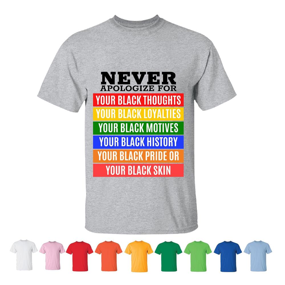 Never apologize for your Black thoughts loyalties history for History Month pride Men Women Black T shirt
