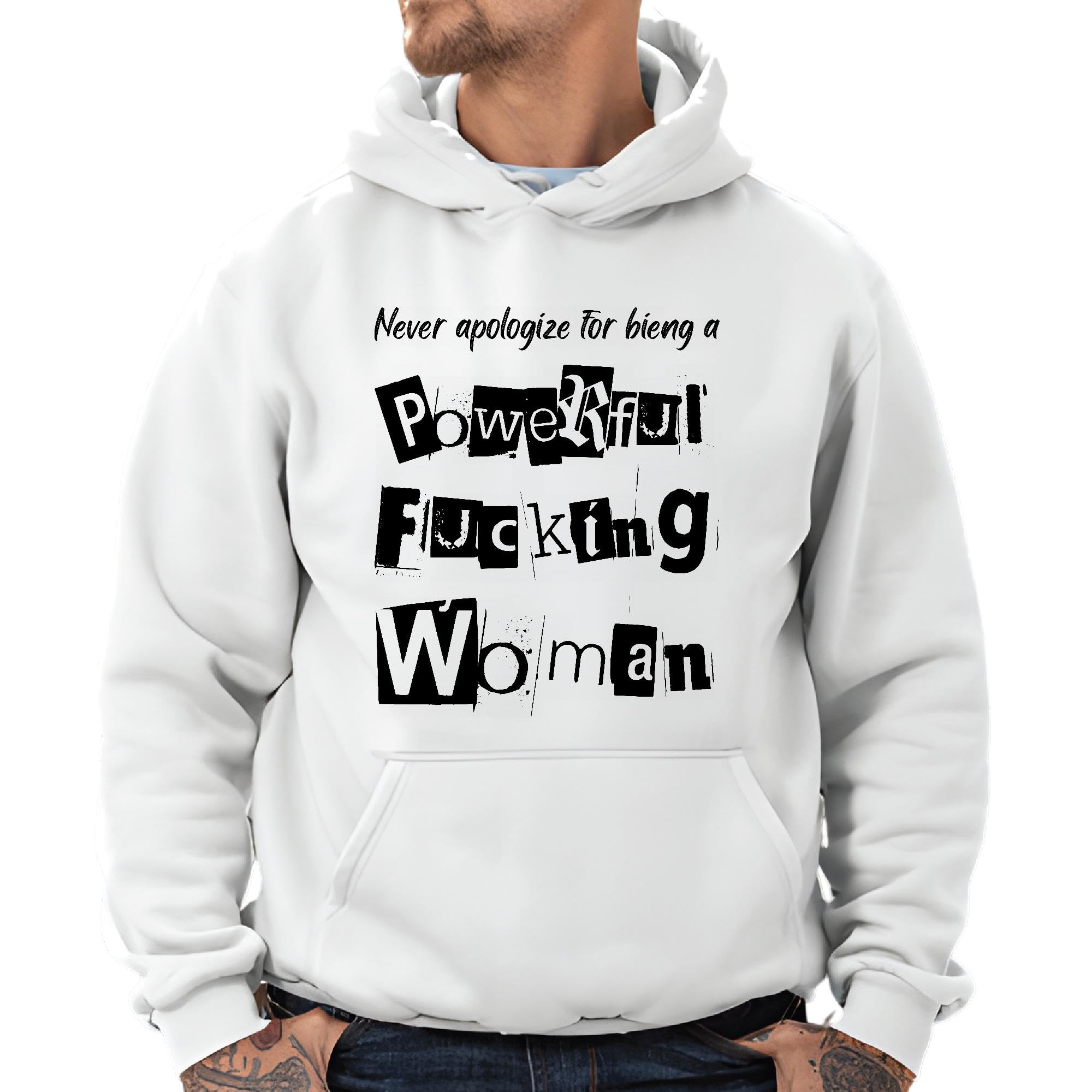 Never Apologize Powerful Woman Funny Badass Lady for Her Gray and Muticolor Unisex Hoodie