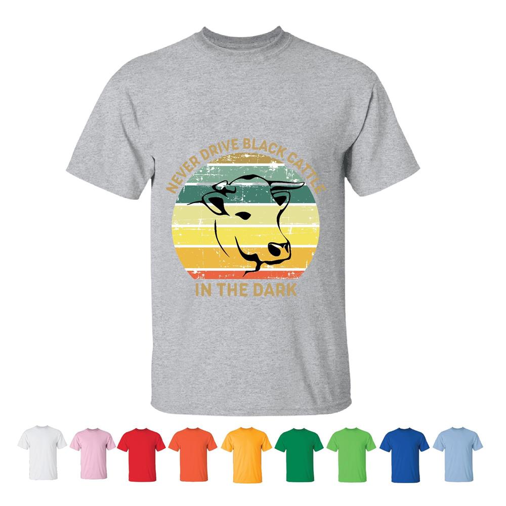 Never drive black cattle Cow graphic for Farmer Men Women White Gray T shirt