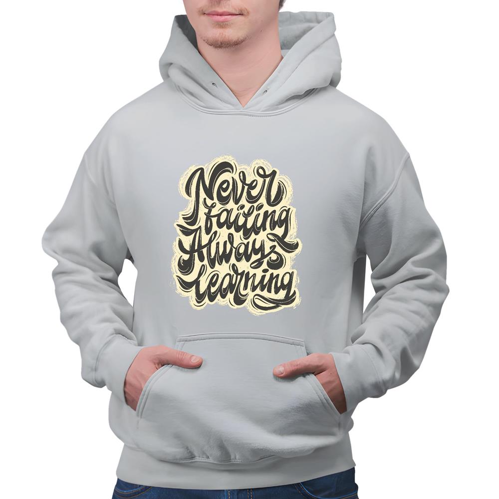 Never Failing Always Learning Inspirational Quote Gift for Motivated Men and Women Gray and Muticolor Unisex Hoodie
