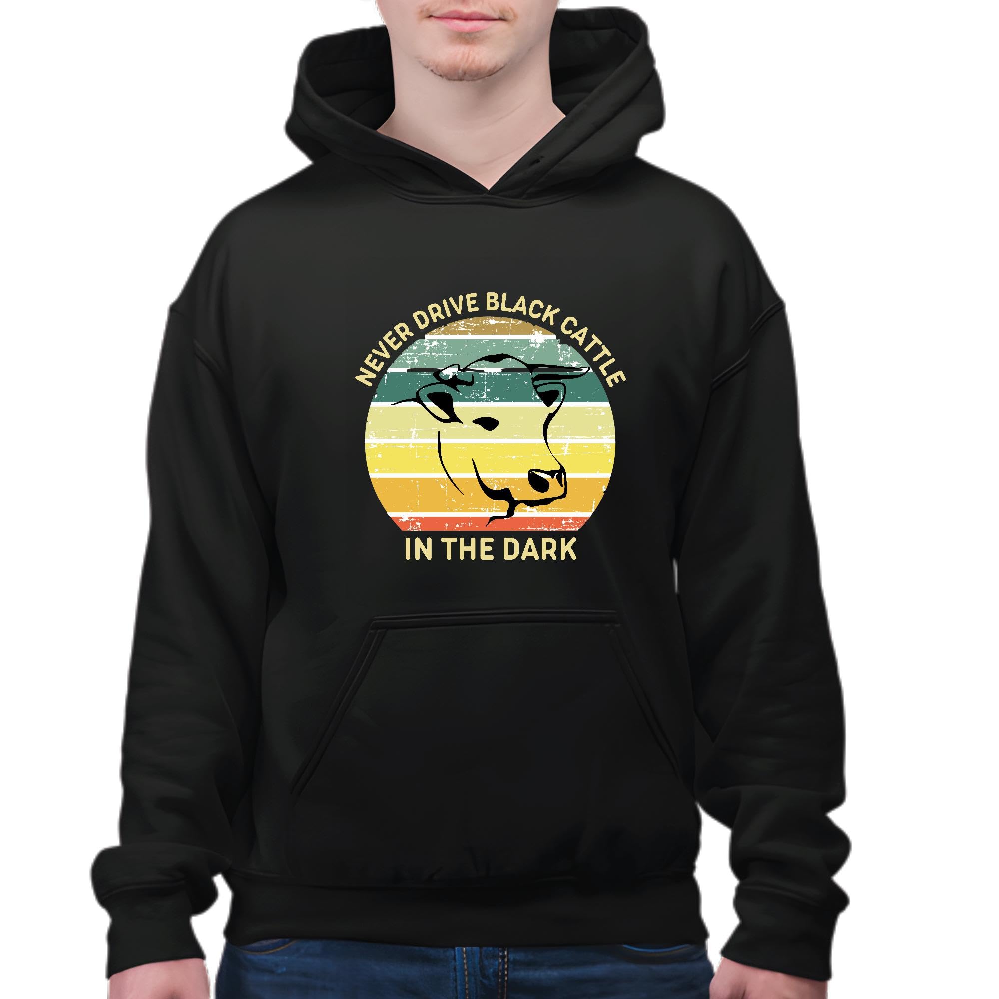 Never drive black cattle Cow graphic for Farmer Black and Muticolor Unisex Hoodie