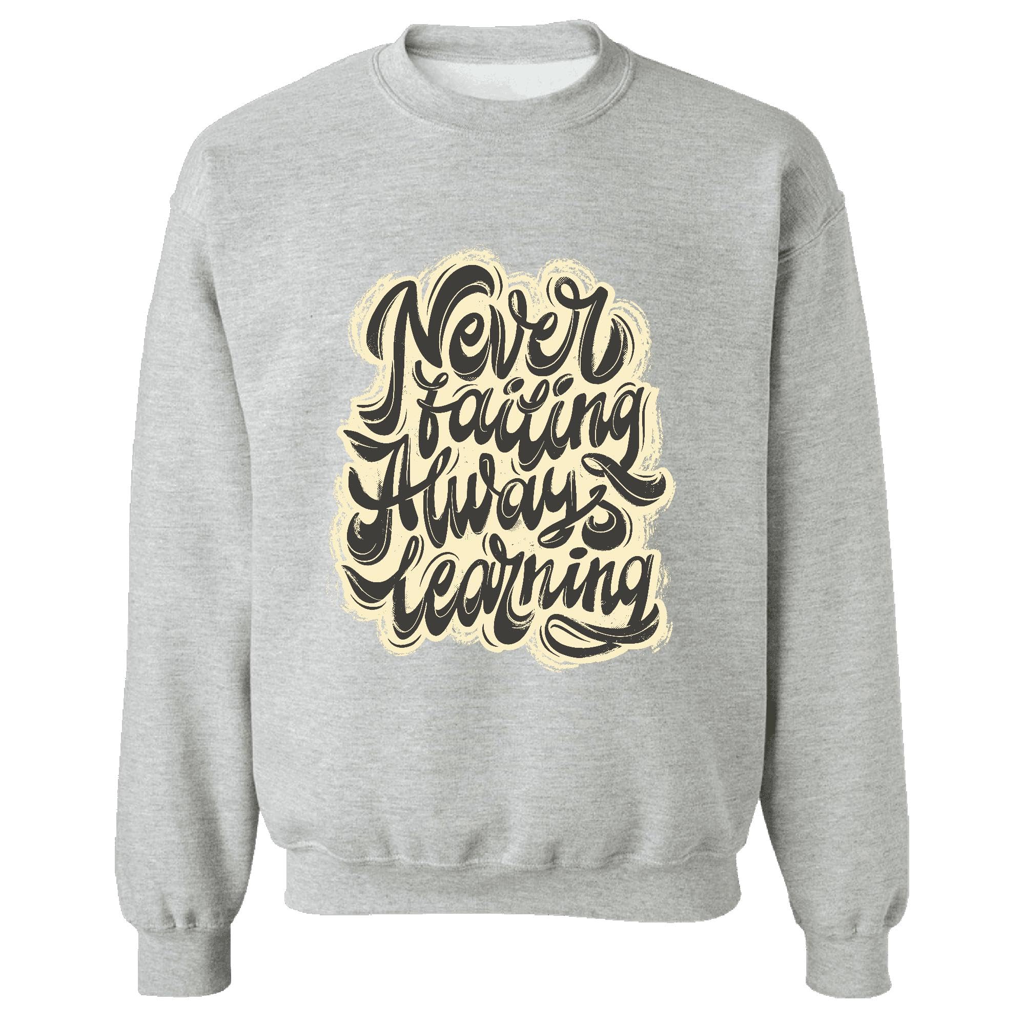 Never Failing Always Learning Inspirational Quote Gift for Motivated Men and Women Grey Muticolor Unisex Sweatshirt