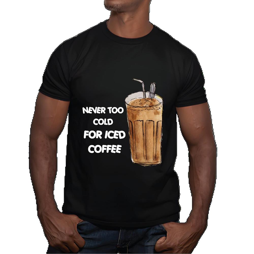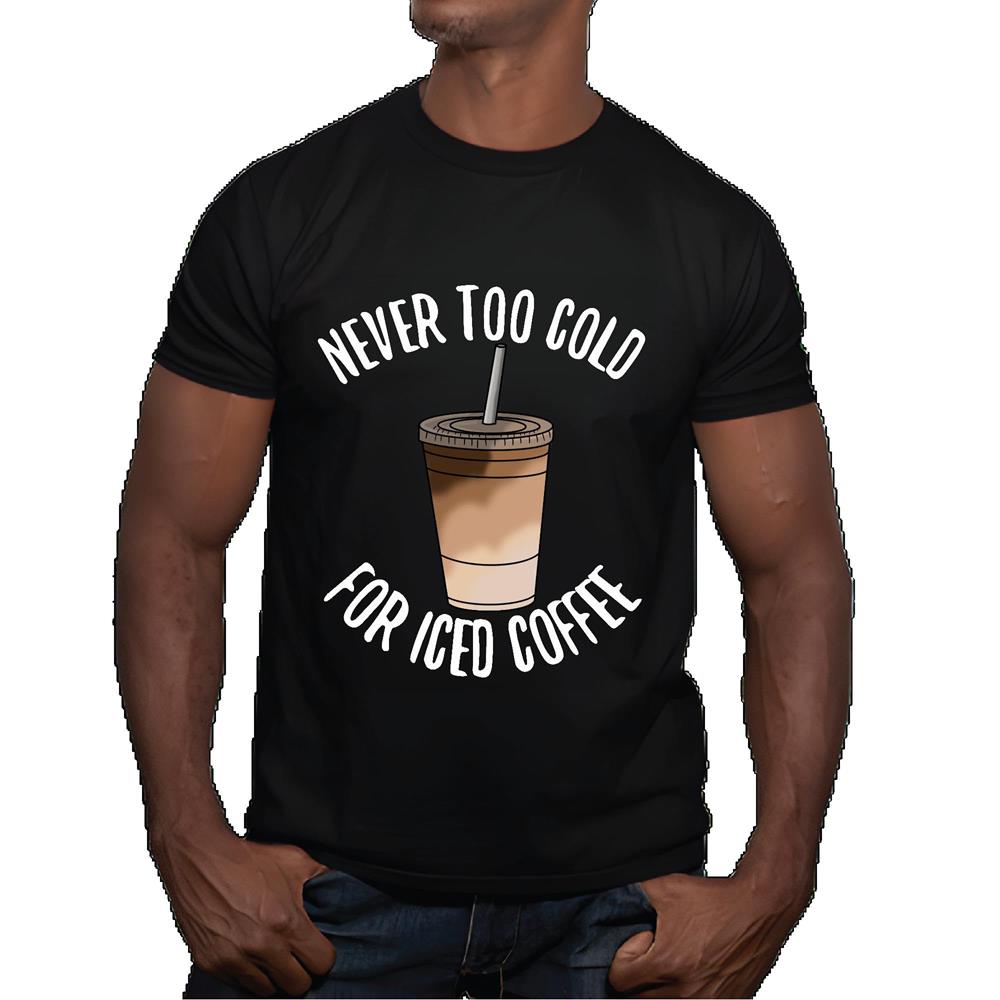 Never too cold for iced coffee for coffee lover Men Women Black Multicolor T shirt