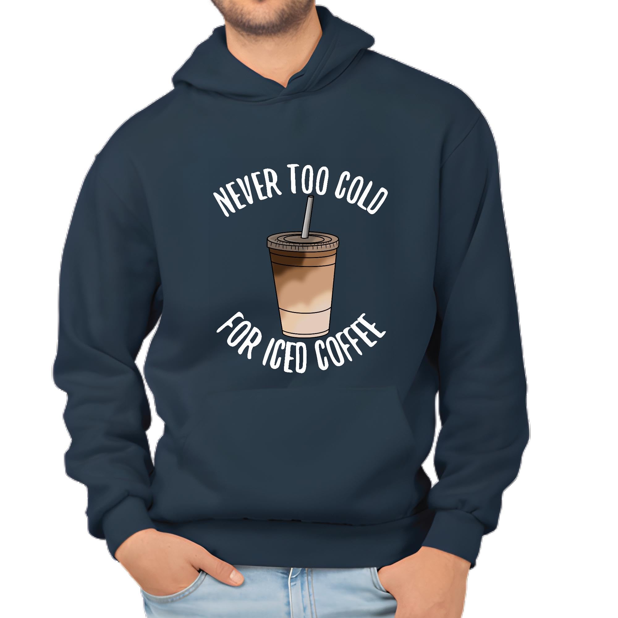 Never too cold for iced coffee for men coffee lover Navy and Muticolor Unisex Hoodie