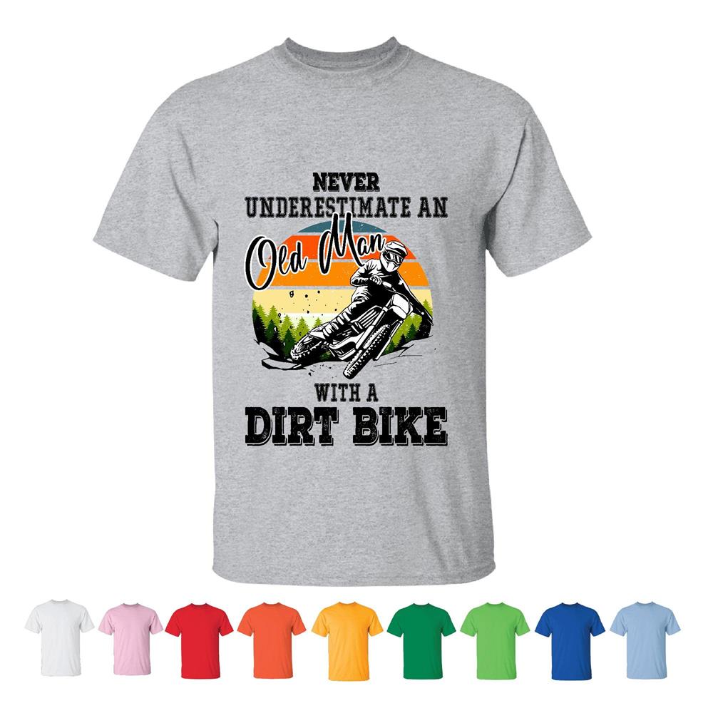 Never underestimate an old man with a Dirt Bike funny for Biking Biker Men Women White Gray T shirt