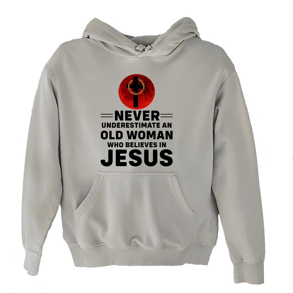 Never Underestimate an old Woman who believes in Jesus God lover Gray and Muticolor Unisex Hoodie