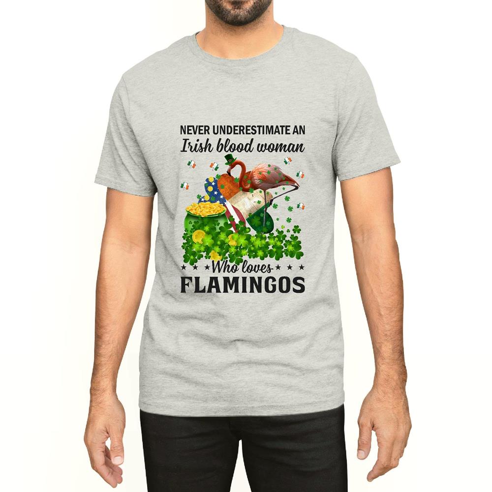 Never underestimate Irish Blood loves Flamingo with Clover ireland US flag Men Women White Gray Multicolor T shirt