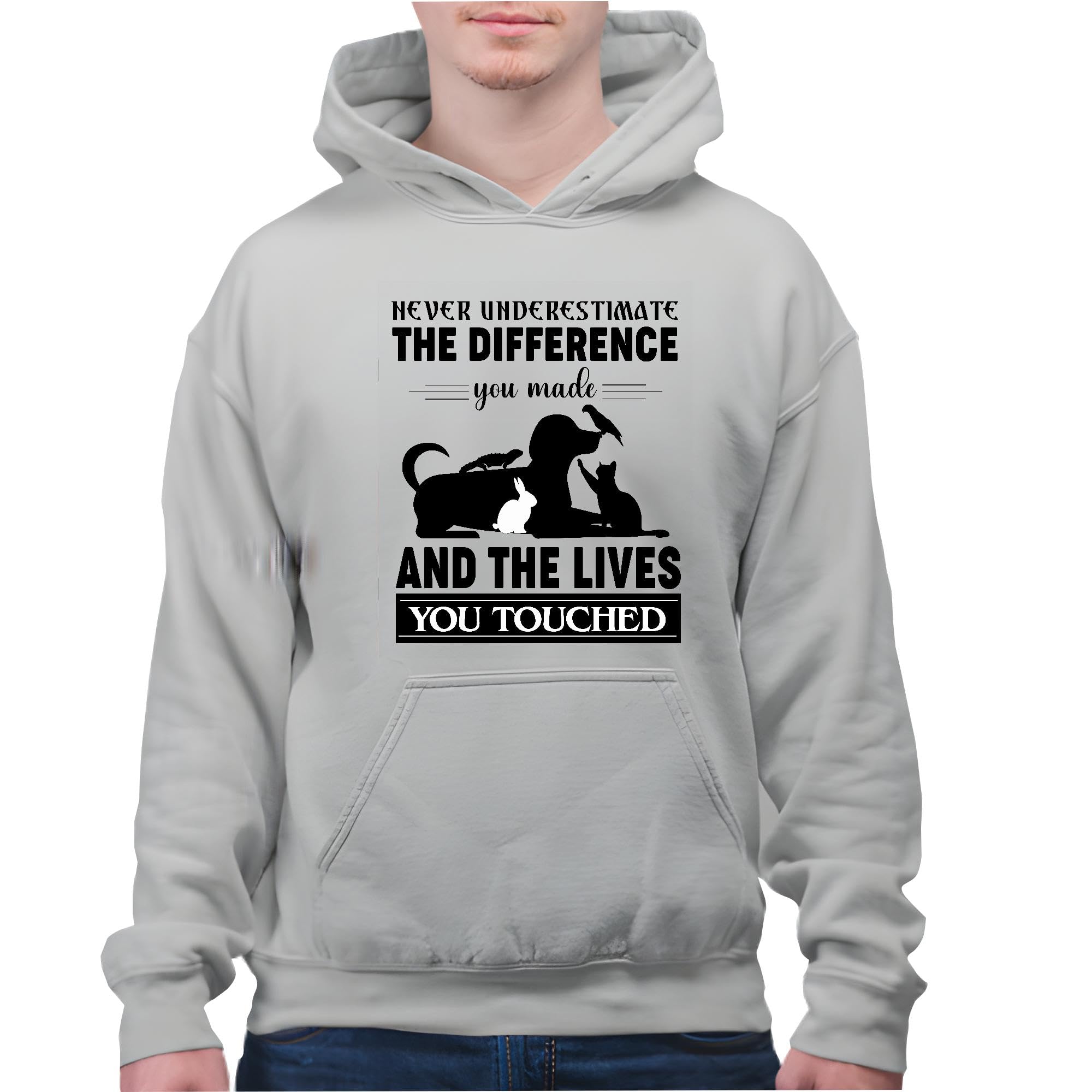 Never Underestimate difference you made for Animal lover Gray and Muticolor Unisex Hoodie
