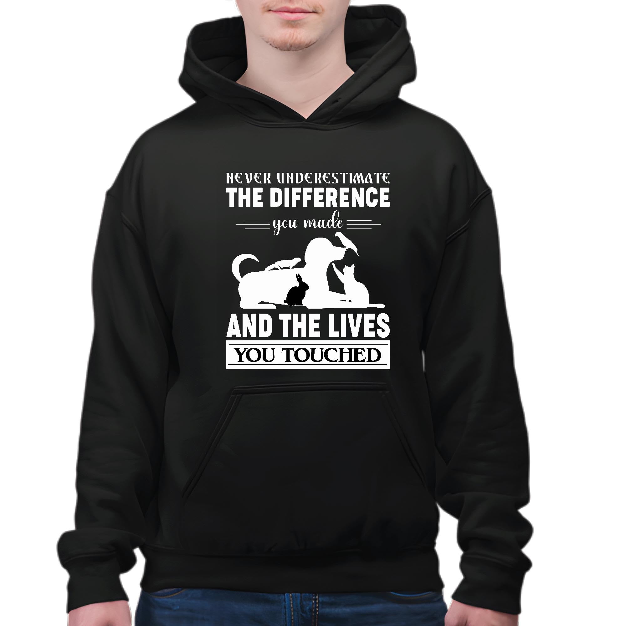 Never Underestimate difference you made for Animal lover Black and Muticolor Unisex Hoodie