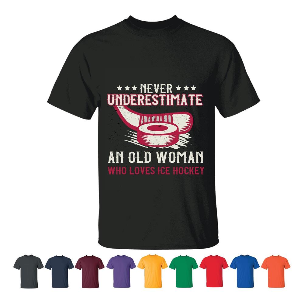 Never underestimate old woman loves Ice Hockey for Hockey woman lover Men Women White Gray T shirt