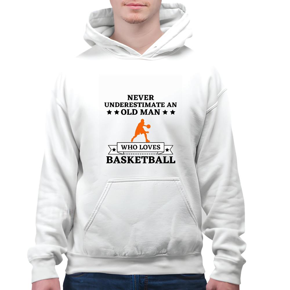 Never Underestimate Old Man who loves Basketball for Basketball Lover White and Muticolor Unisex Hoodie
