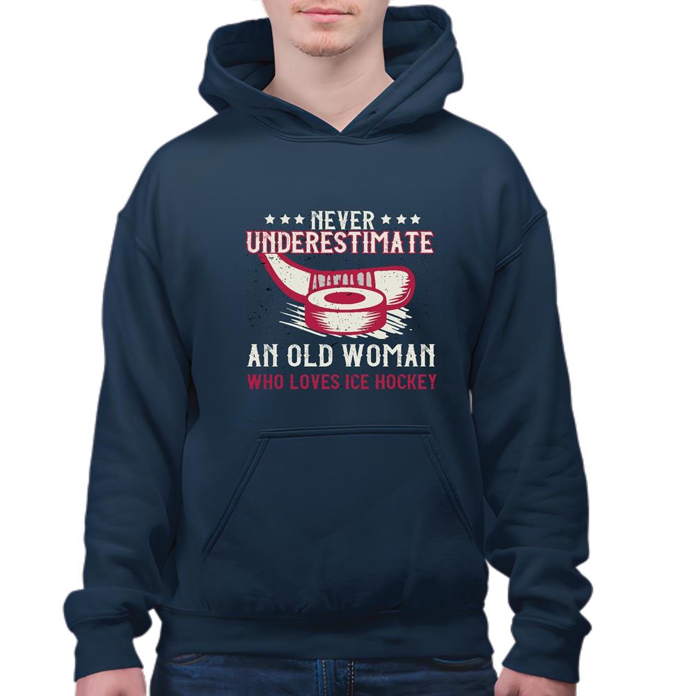 Never underestimate old woman loves Ice Hockey for Hockey woman lover Navy and Muticolor Unisex Hoodie
