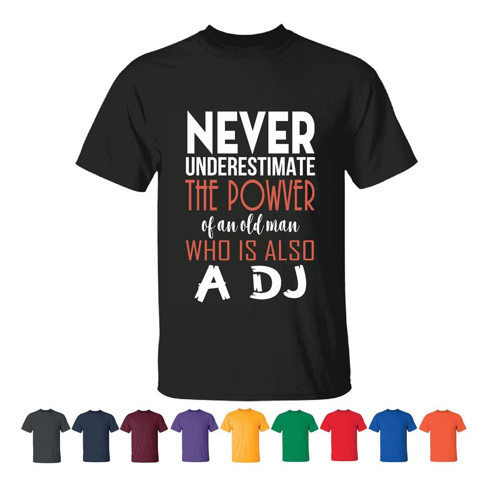 Never Underestimate Power of Old Man DJ Lovers Sarcasm Humor Gift Idea Men Women Black T shirt