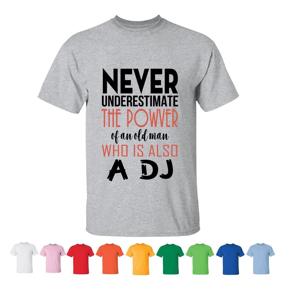 Never Underestimate Power of Old Man DJ Lovers Sarcasm Humor Gift Idea Men Women White Gray T shirt