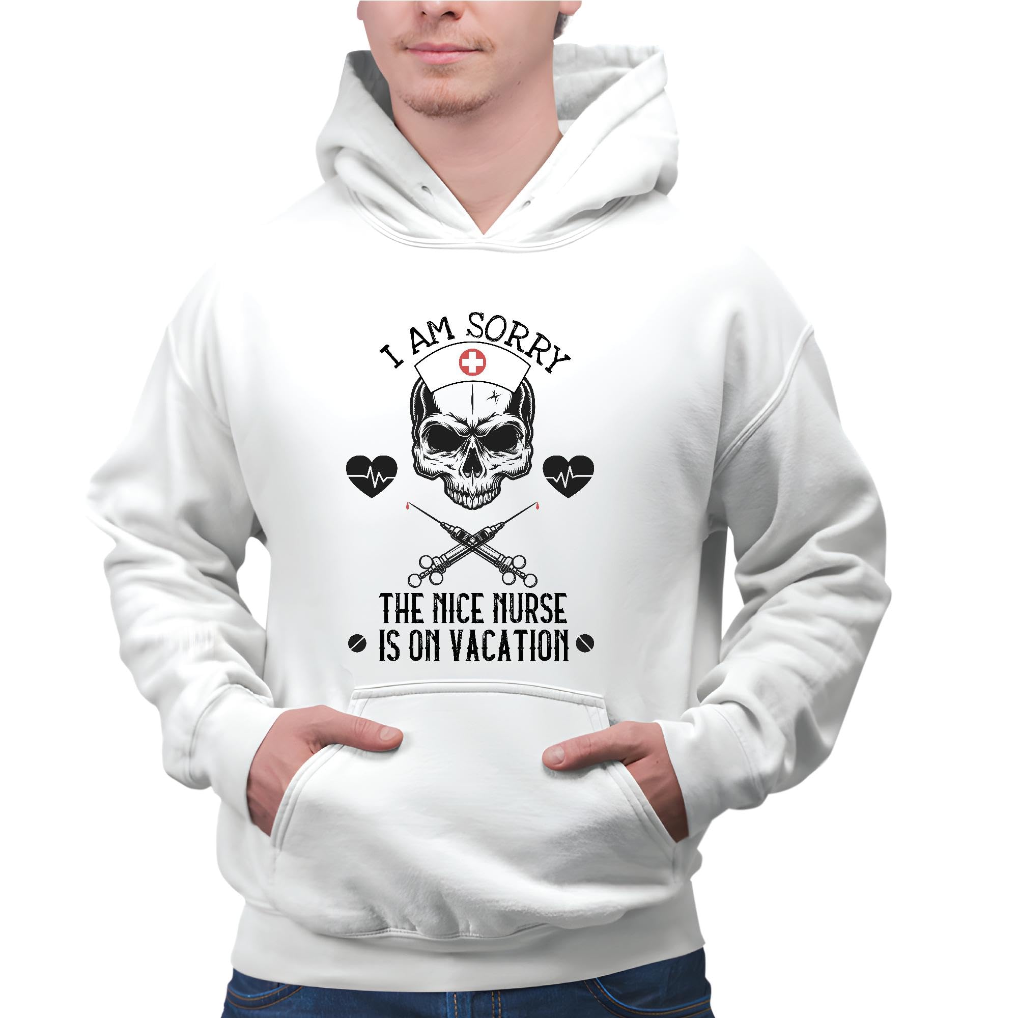 Nice nurse is on vacation funny skull face Gray and Muticolor Unisex Hoodie