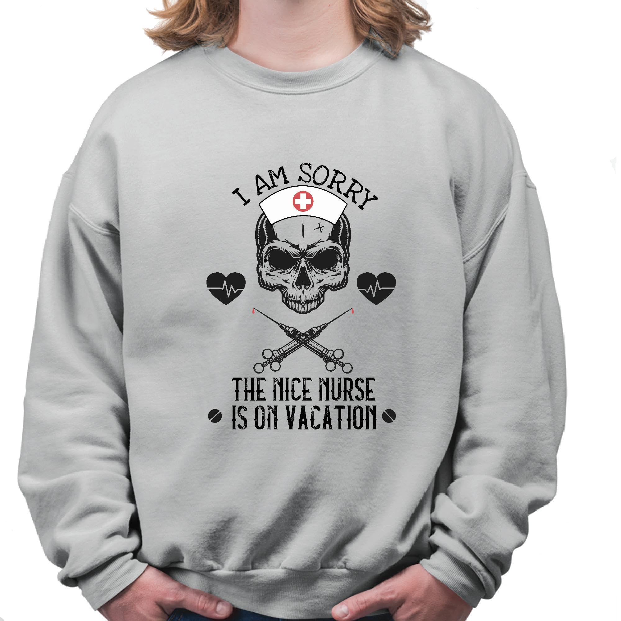 Nice nurse is on vacation funny skull face Grey Muticolor Unisex Sweatshirt