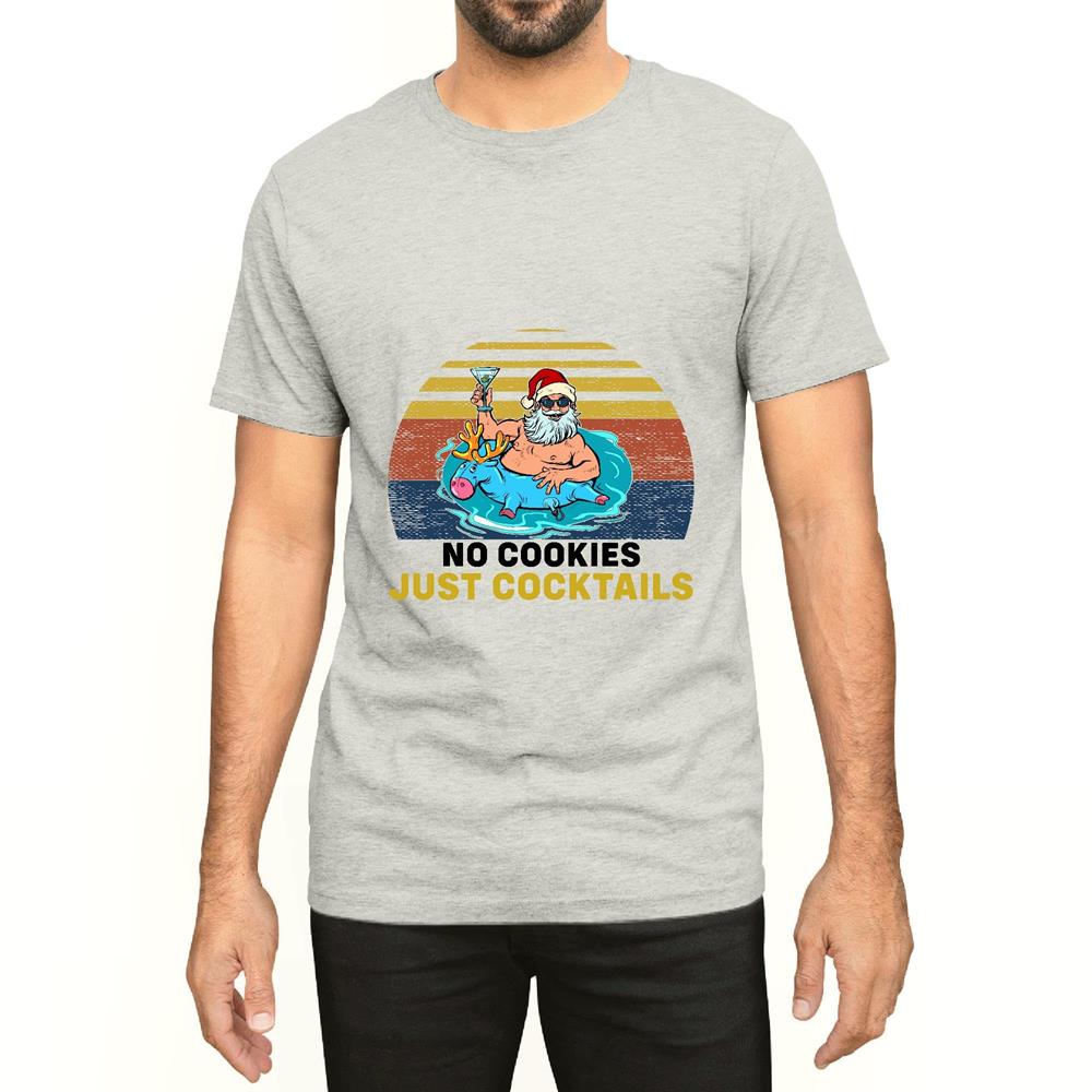 No Cookies Cocktails Santa Summer humor for a funny summer vacation Men Women White Gray Multicolor T shirt
