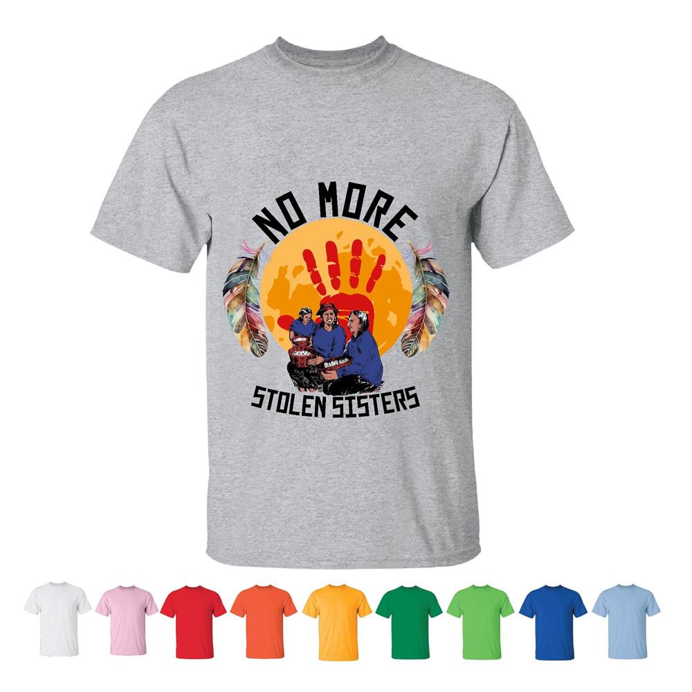 No More Stolen Sisters Indigenous Women Equality Feminist Awareness Graphic Tee for All Men Women White Gray T shirt