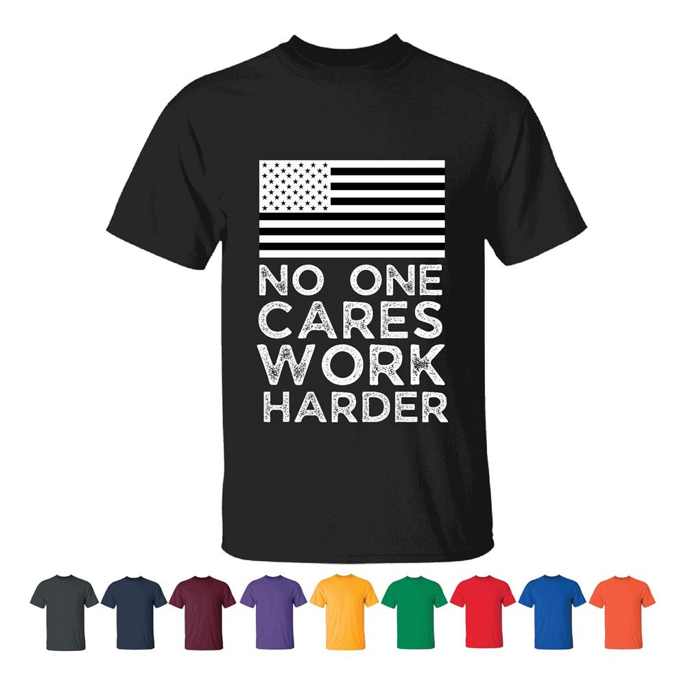 No one cares work harder motivational Workout Gym on back for Fitness lovers Men Women Black T shirt
