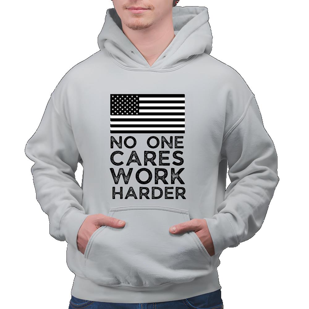 No one cares work harder motivational Workout Gym on back for Fitness lovers Gray and Muticolor Unisex Hoodie