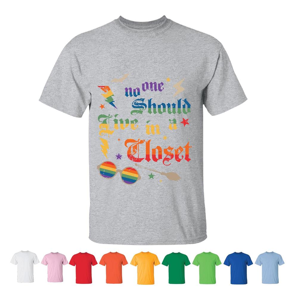 No one should live in a closet LGBTQ Gay pride Men Women White Gray T shirt