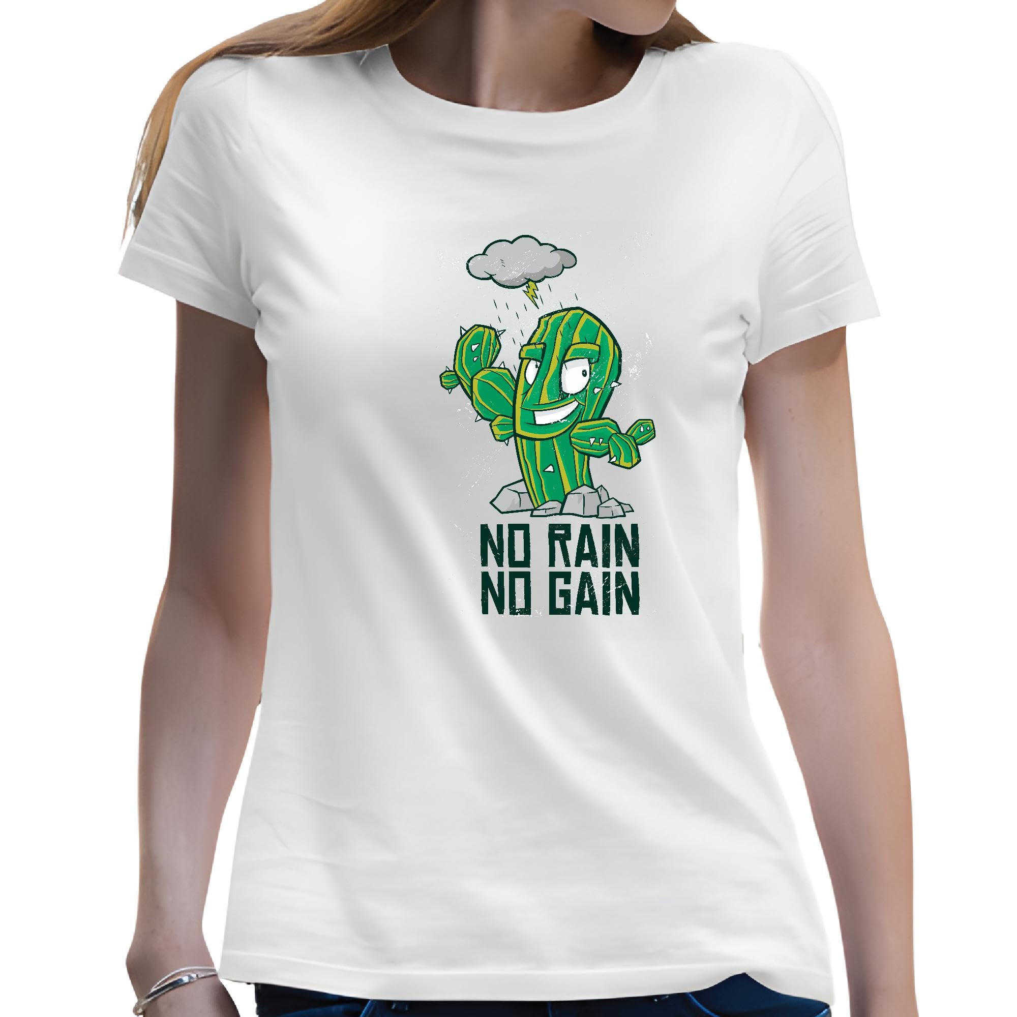 No Rain No Gain Fitness Gift for Cactus Lovers Men Women White Gray Multicolor T shirt