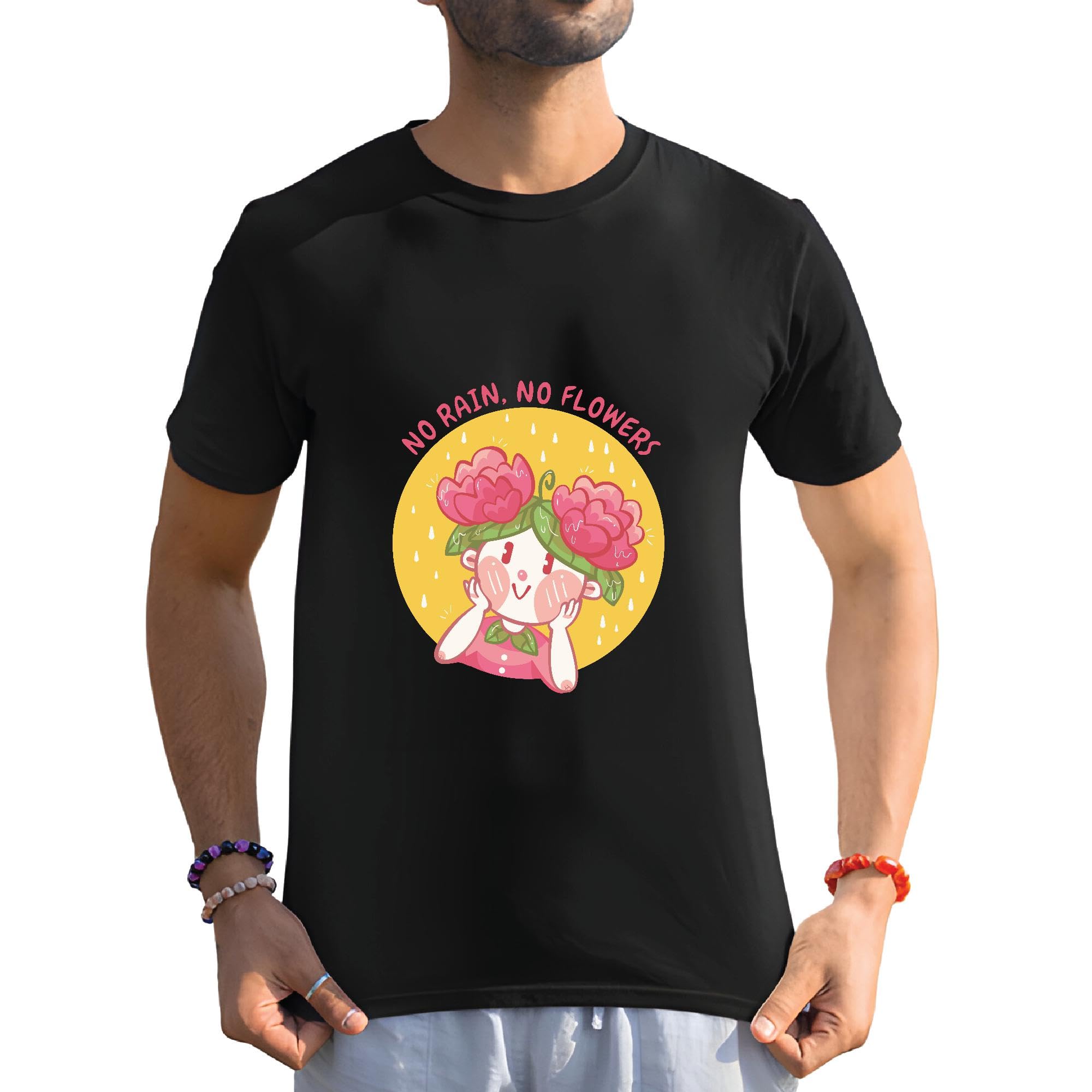 No Rain No Flowers Cute Girl Funny Gift Idea for Girls and Women Men Women Black Multicolor T shirt