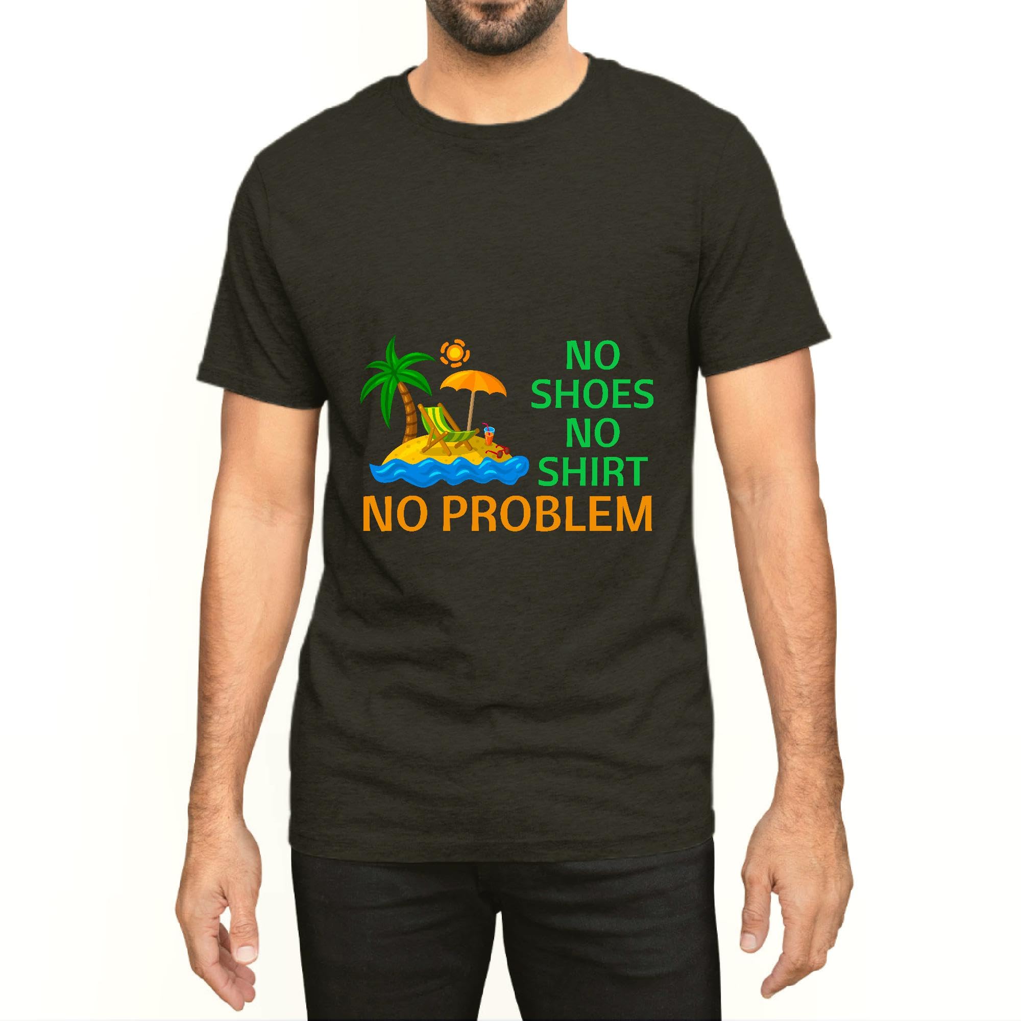 No Shoes NoNo Problem Palm Tree Island gift Men Women Black Multicolor T shirt