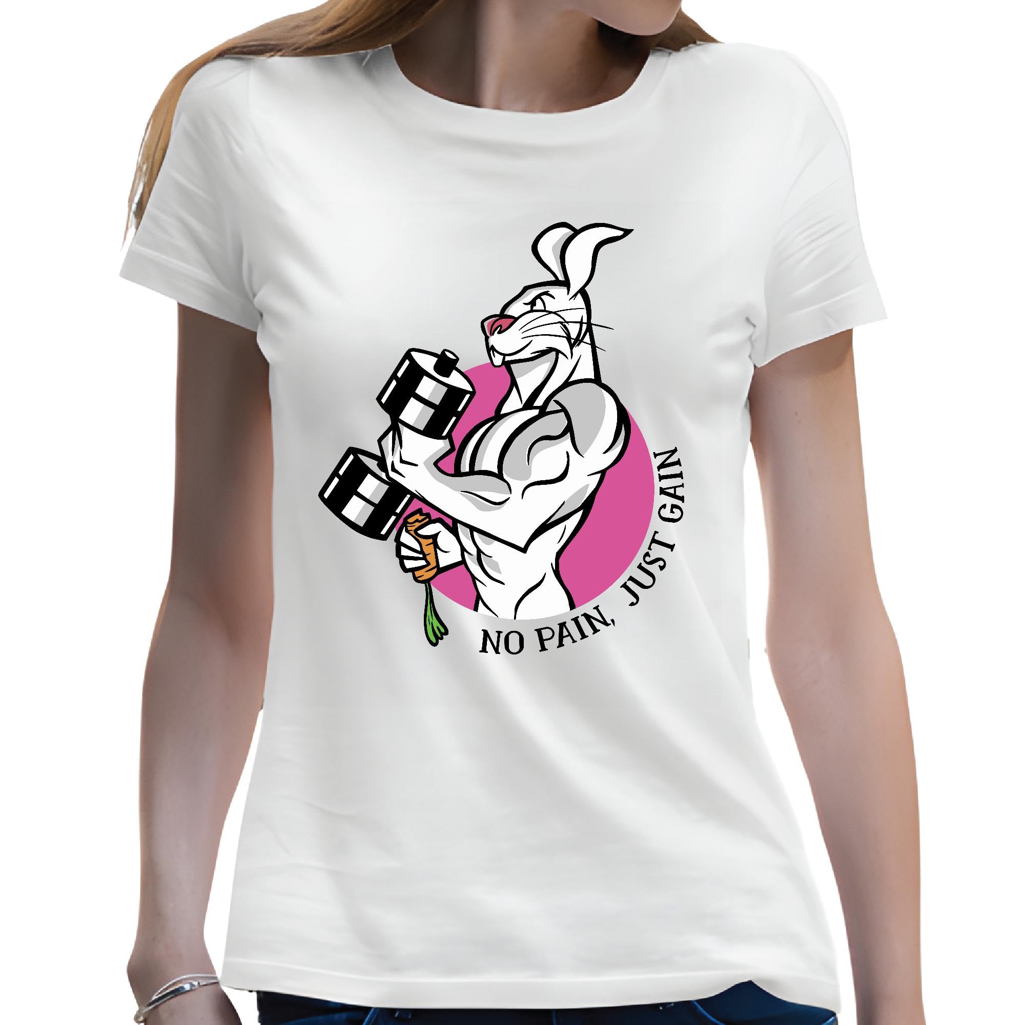 No Pain Rabbit Gift Muscular Rabbit Weightlifting Quote for Weightlifting Enthusiasts Men Women White Gray Multicolor T shirt