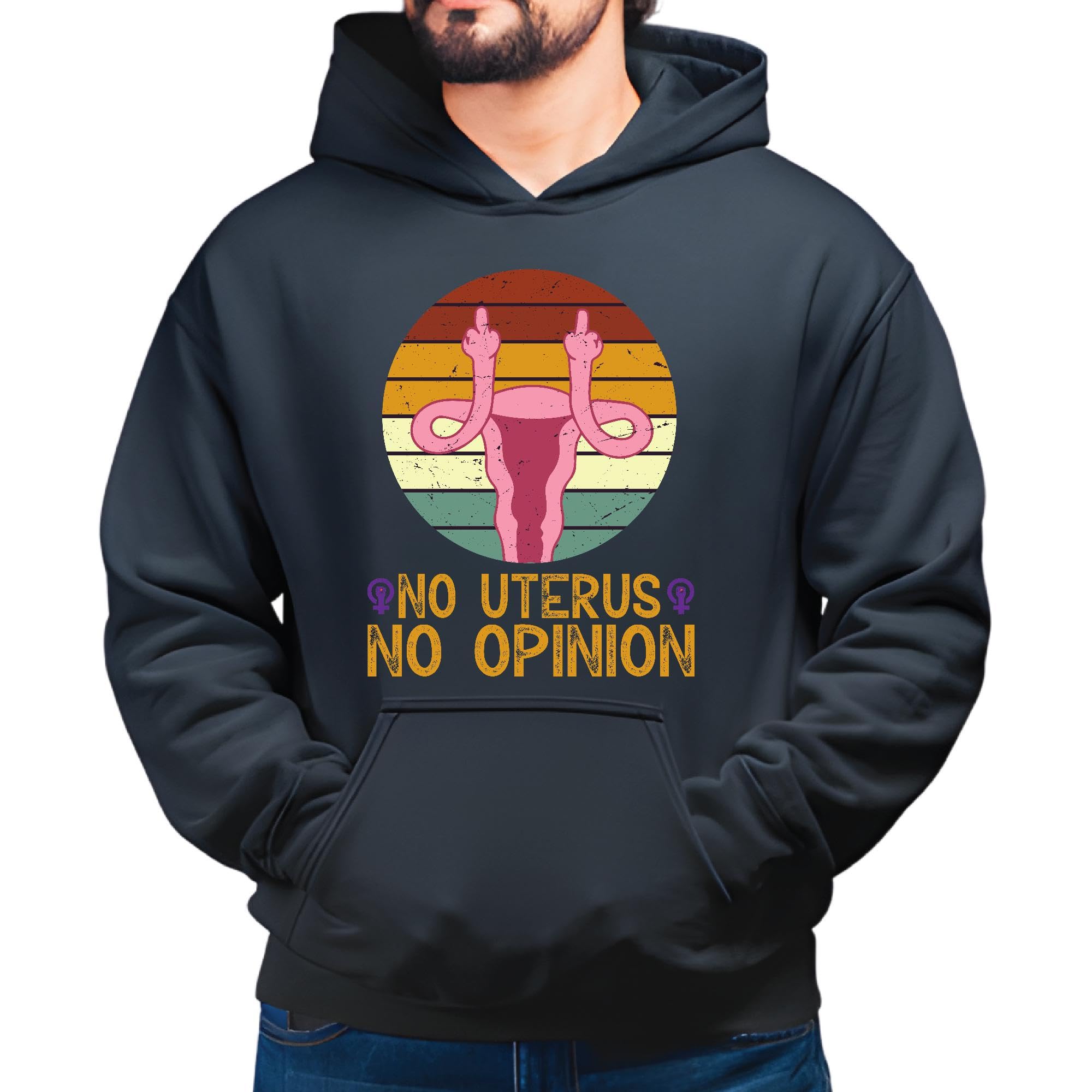 No Uterus no opinion for Woman Feminist Black and Muticolor Unisex Hoodie