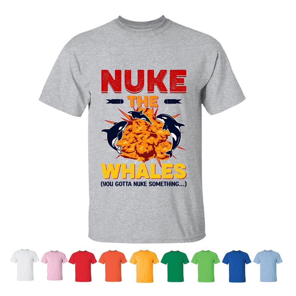 Nuke the Whales Exploding norcas armed an explosive to destroy whales Men Women White Gray T shirt