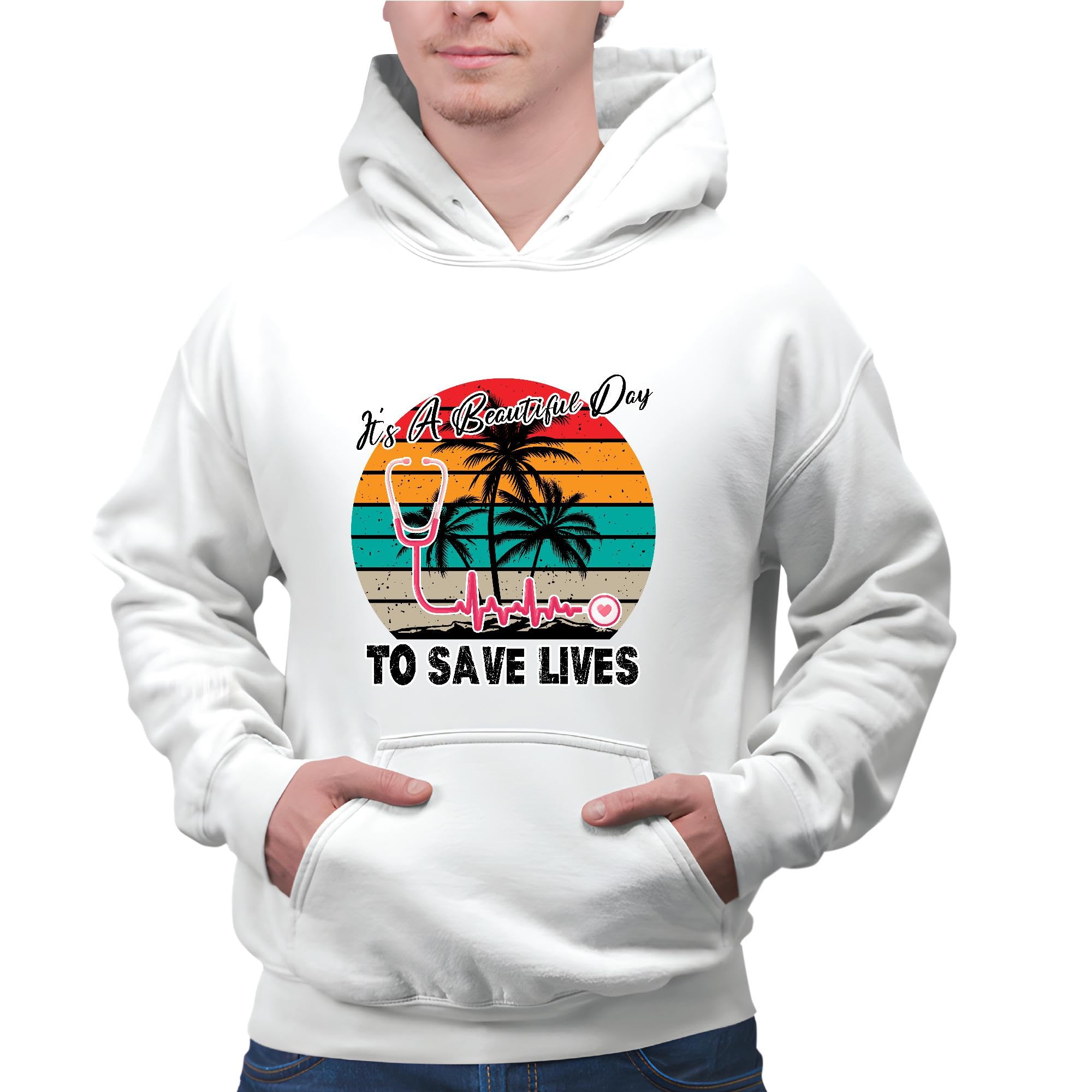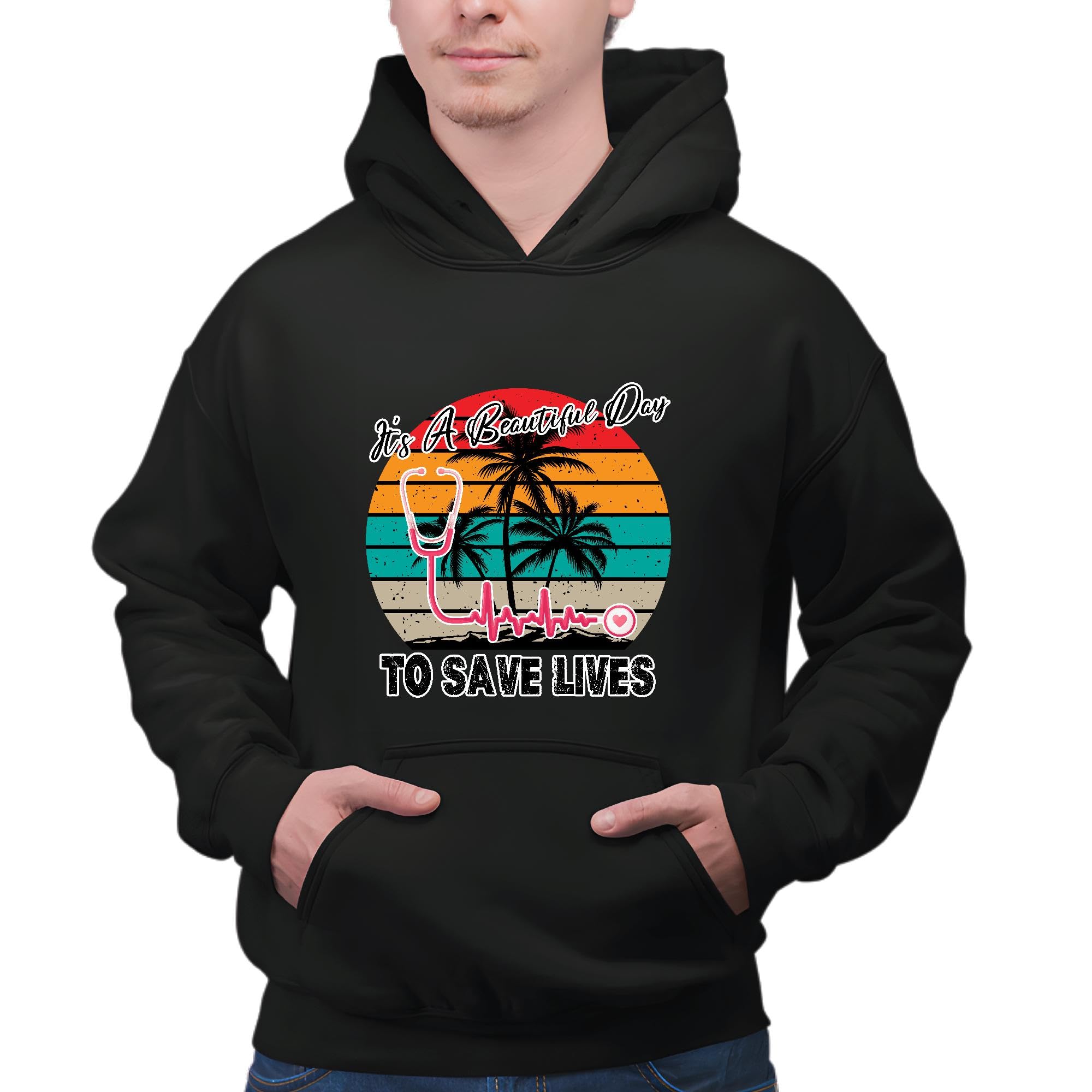Nurse and Doctor Gift Inspirational and Motivational Saying Beautiful Day to Save Lives Black and Muticolor Unisex Hoodie