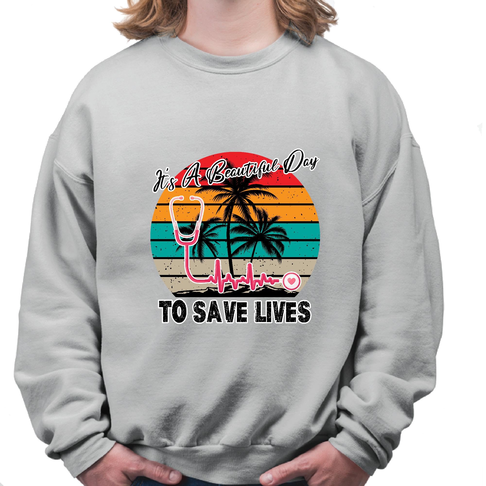 Nurse Doctor Gift Inspirational Motivational Saying Beautiful Saving Lives Grey Muticolor Unisex Sweatshirt