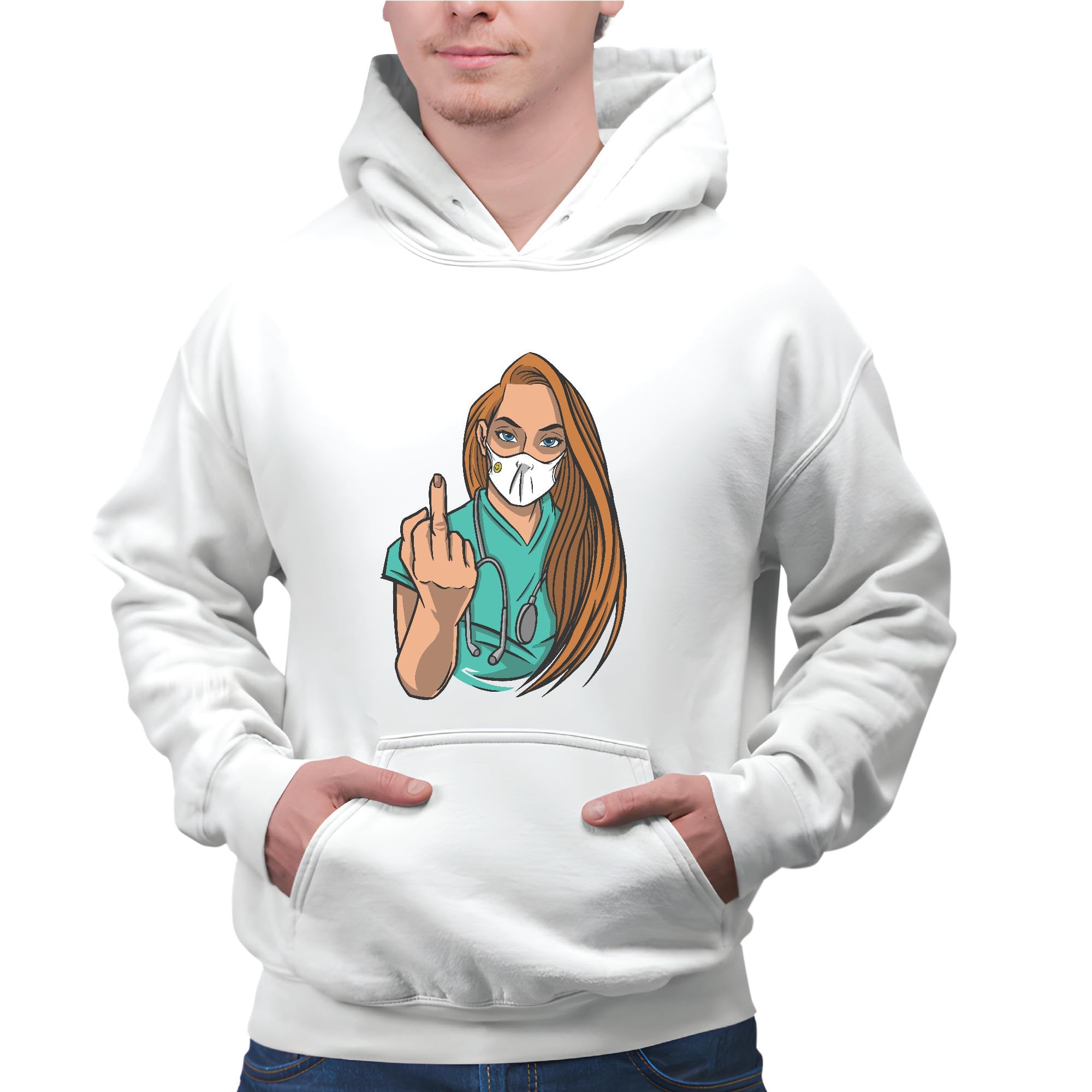 Nurse Gift Flipping Off Face Mask and Medicine Healthcare Gift for Nurses Gray and Muticolor Unisex Hoodie