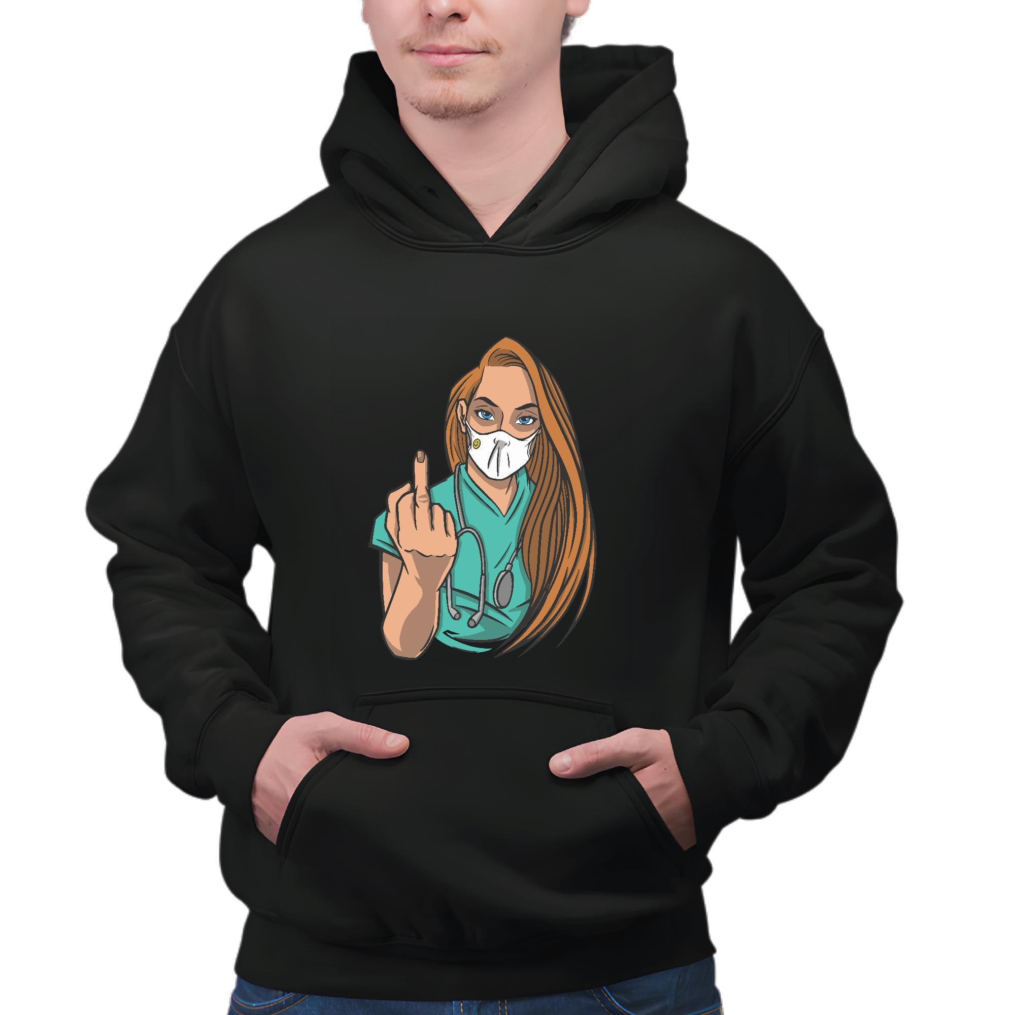 Nurse Gift Flipping Off Face Mask and Medicine Healthcare Gift for Nurses Black and Muticolor Unisex Hoodie