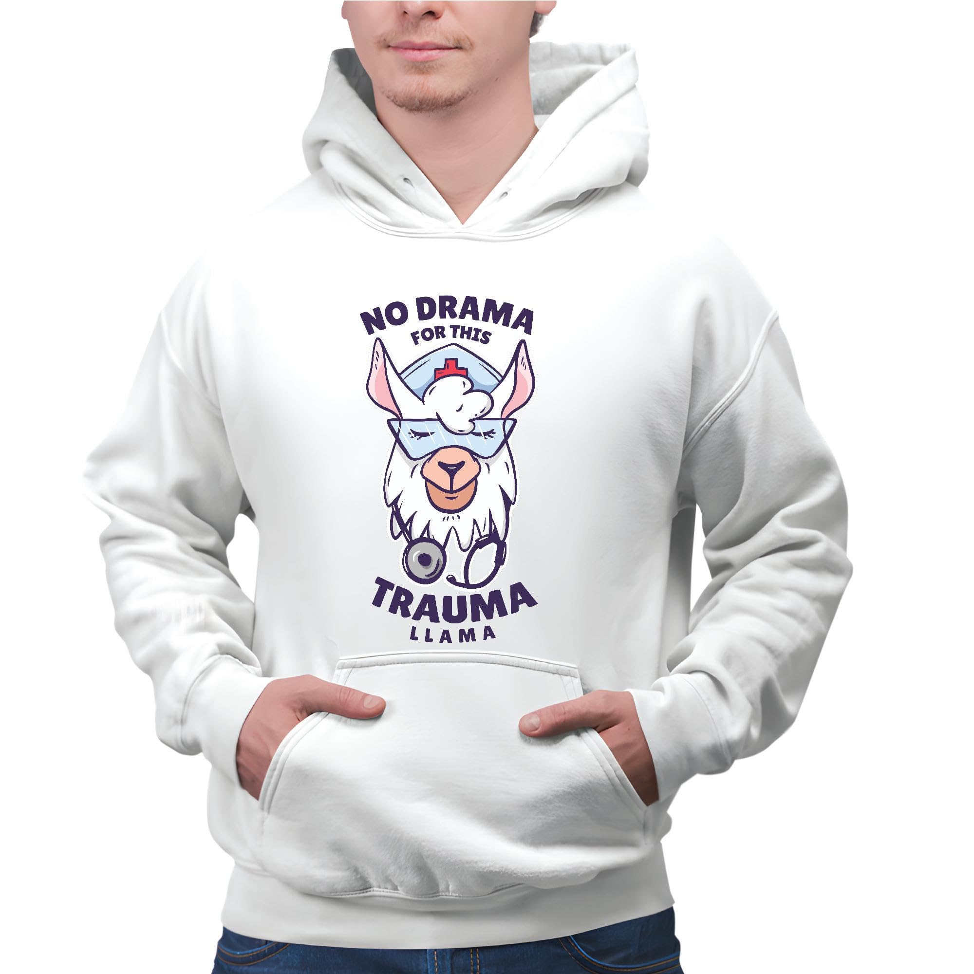 Nurse Gift No Drama For This Llama Llama Illustration for Nurses and Medical Professionals Gray and Muticolor Unisex Hoodie