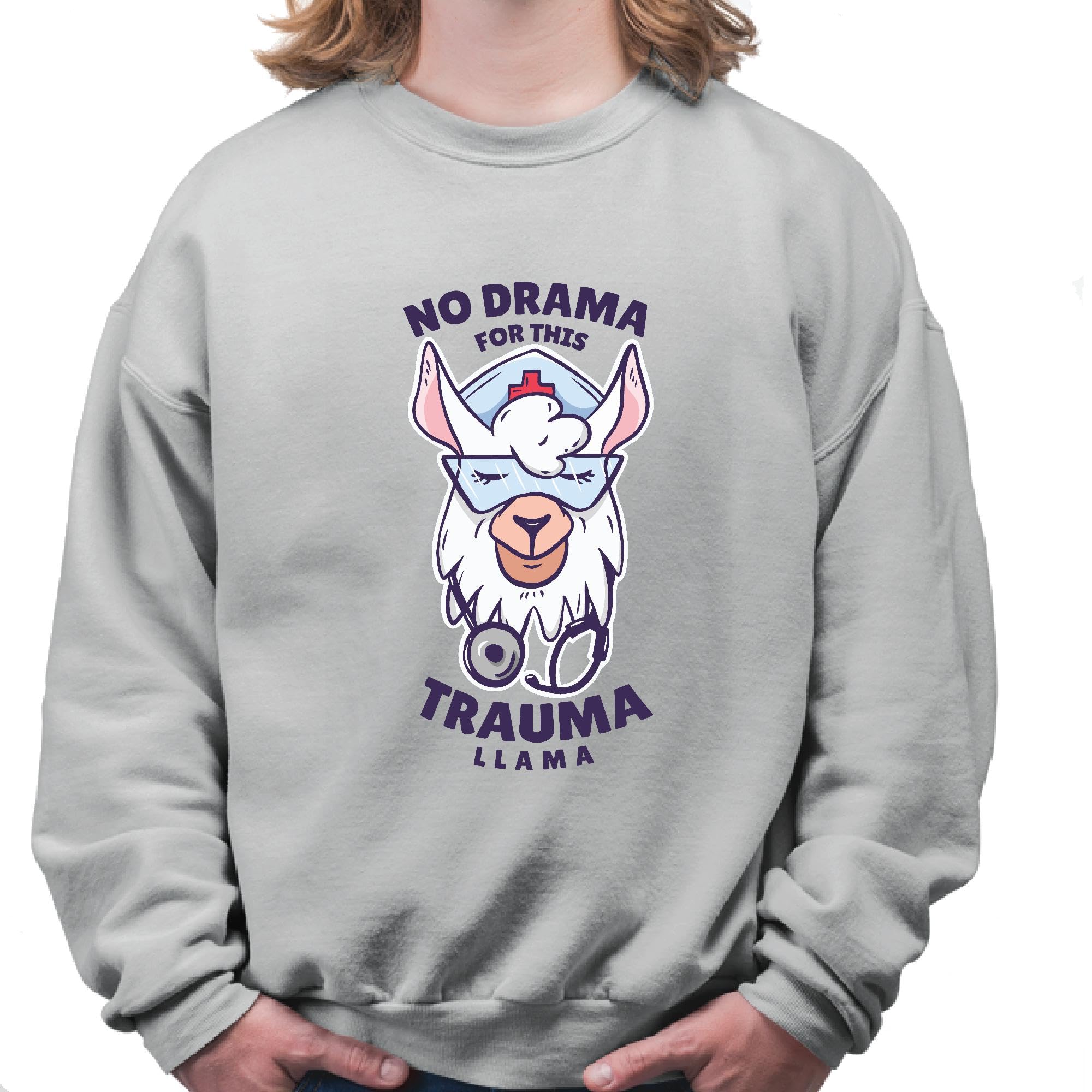 Nurse Gift No Drama Llama Graphic for Medical Professionals Grey Muticolor Unisex Sweatshirt